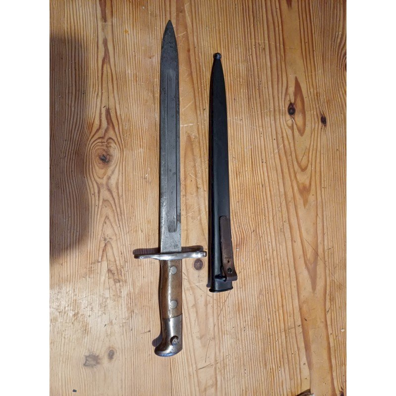 Baionnette 39/45 , long : 41,5 cm , lame seule : 30 cm , poids : 600 g No de série : 144472 + Fourreau Métal , trés bon ètat