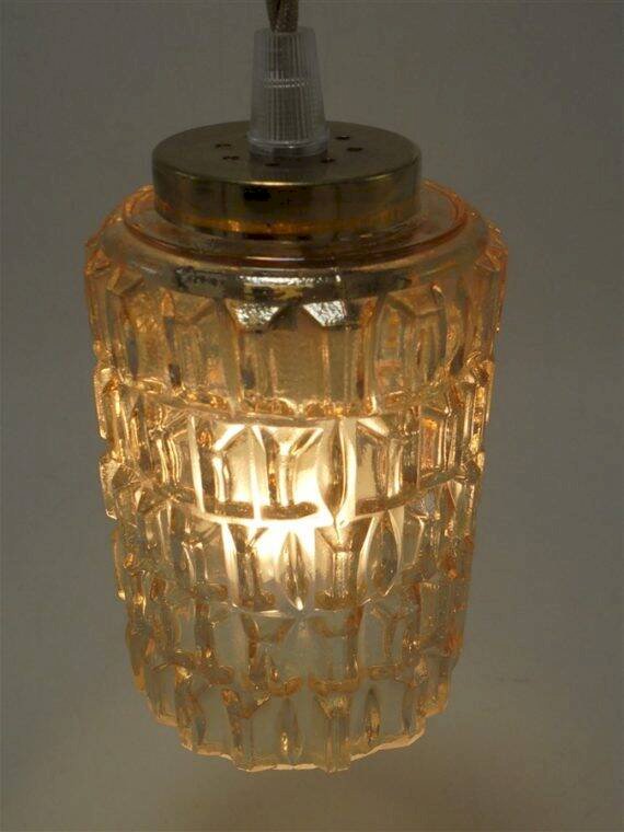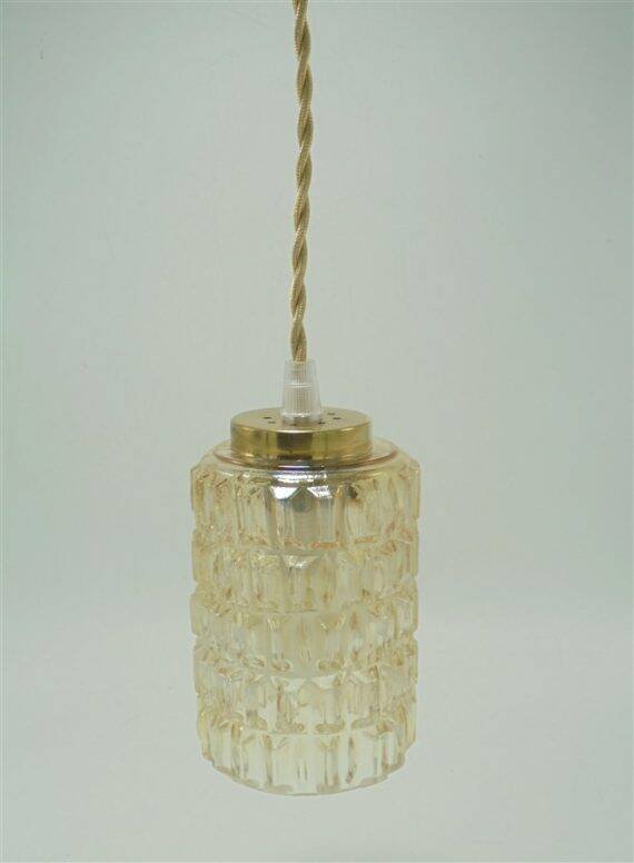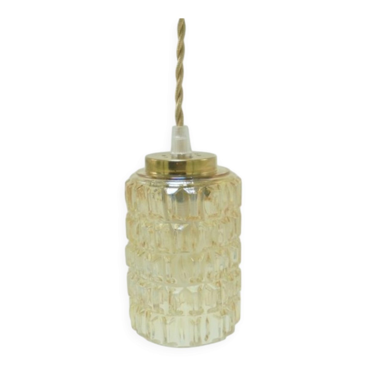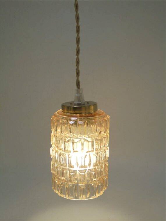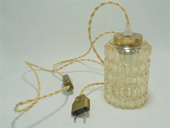 Baladeuse en verre or, facile à déplacer, globe vintage de forme cylindrique.Câble de 160 cm.Globe: 8 X 12 cm.Douille e14.Poids: 360 g.