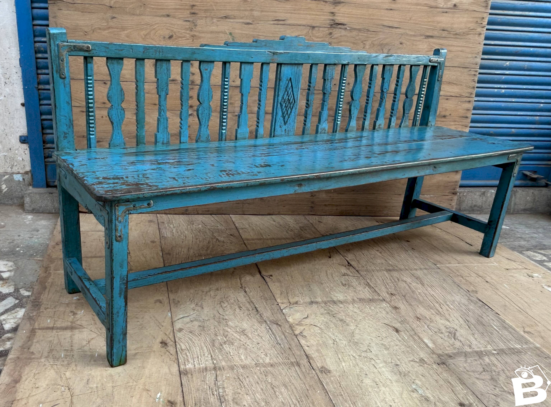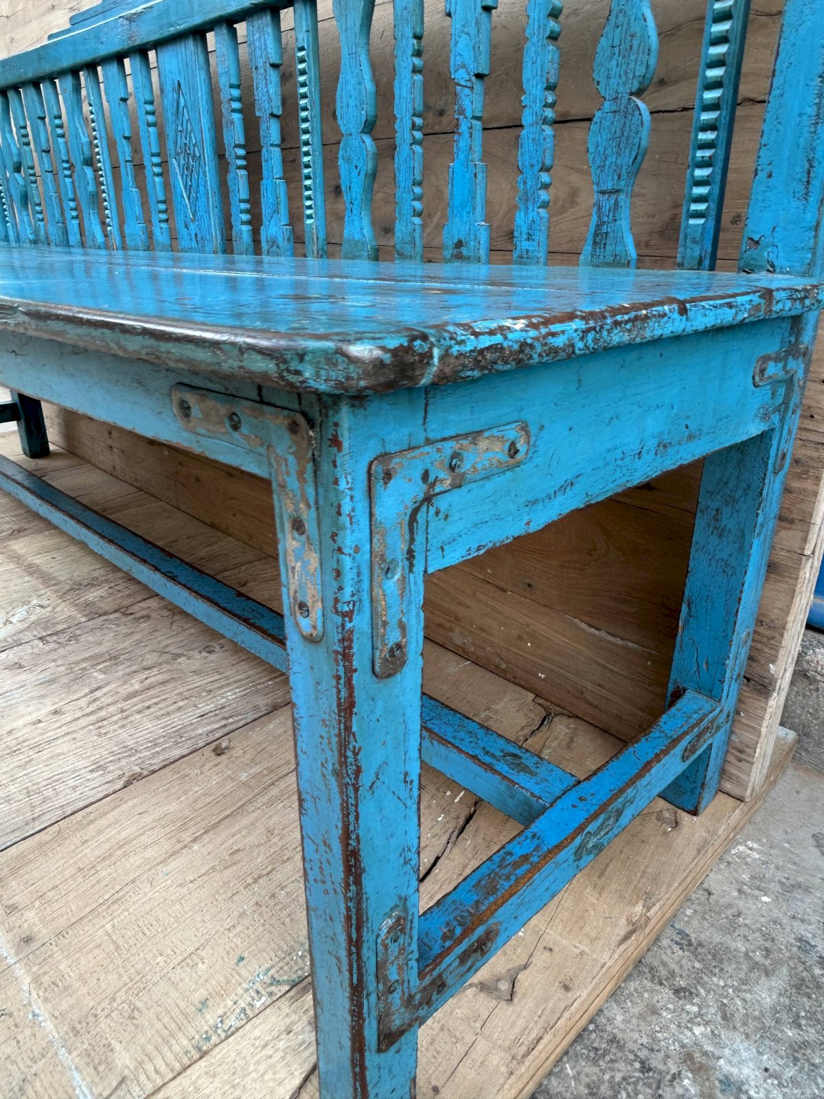 Banc art déco en teck birman Ethnique Bleu Bois