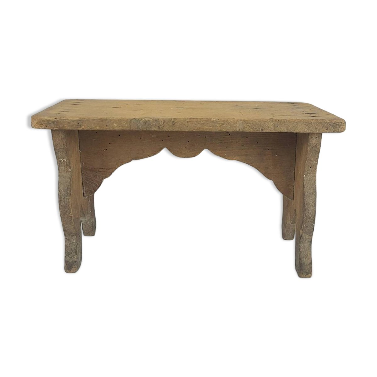 Petit banc ancien en bois.Hauteur 19 cm.Dimensions 15, 5*34 cm.En bon état / belle patine.