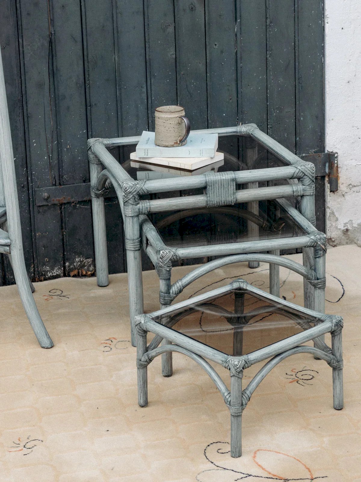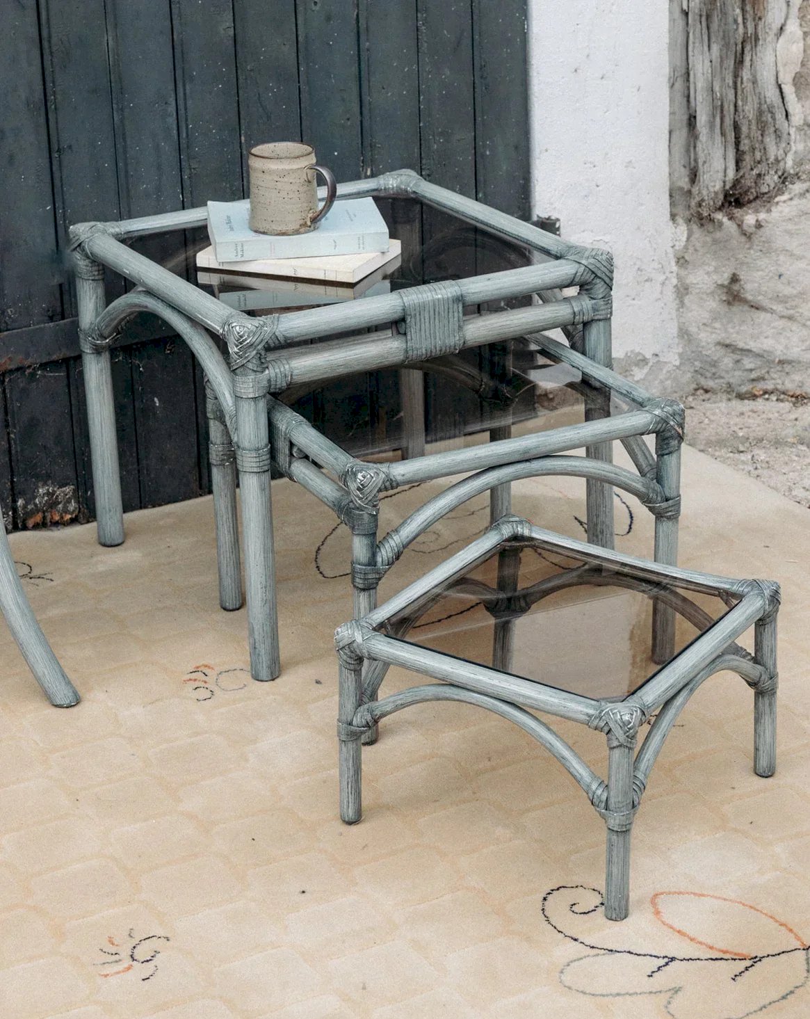 Découvrez cet ensemble de 3 tables gigognes Maugrion en rotin gris, à l’allure élégante et naturelle. Leurs plateaux carrés en verre ajoutent une touche de légèreté et de transparence. Pratiques et empilables, elles s’adaptent à tous vos espaces. Leur finition soignée souligne un design raffiné et intemporel. Apportez une note vintage et fonctionnelle à votre intérieur. Dimensions de la petite table : Longueur : 33 cm Largeur : 33 cm Hauteur : 23 cm Dimensions de la moyenne table : Longueur : 41 cm Largeur : 41 cm Hauteur : 33 cm Dimensions de la grande table : Longueur : 49 cm Largeur : 49 cm Hauteur : 42 cm État:Occasion: Objet ayant été utilisé. Objet présentant quelques marques d'usure superficielle, ...Occasion: Objet ayant été utilisé. Objet présentant quelques marques d'usure superficielle, entièrement opérationnel et fonctionnant correctement. Il peut s'agir d'un modèle de démonstration ou d'un objet retourné en magasin après une courte période d'utilisation. les éventuelles imperfections. Marque:Debongout Type:Produit chiné Matériau:Rotin Style:Contemporain Personnalisé:Tables gigognes