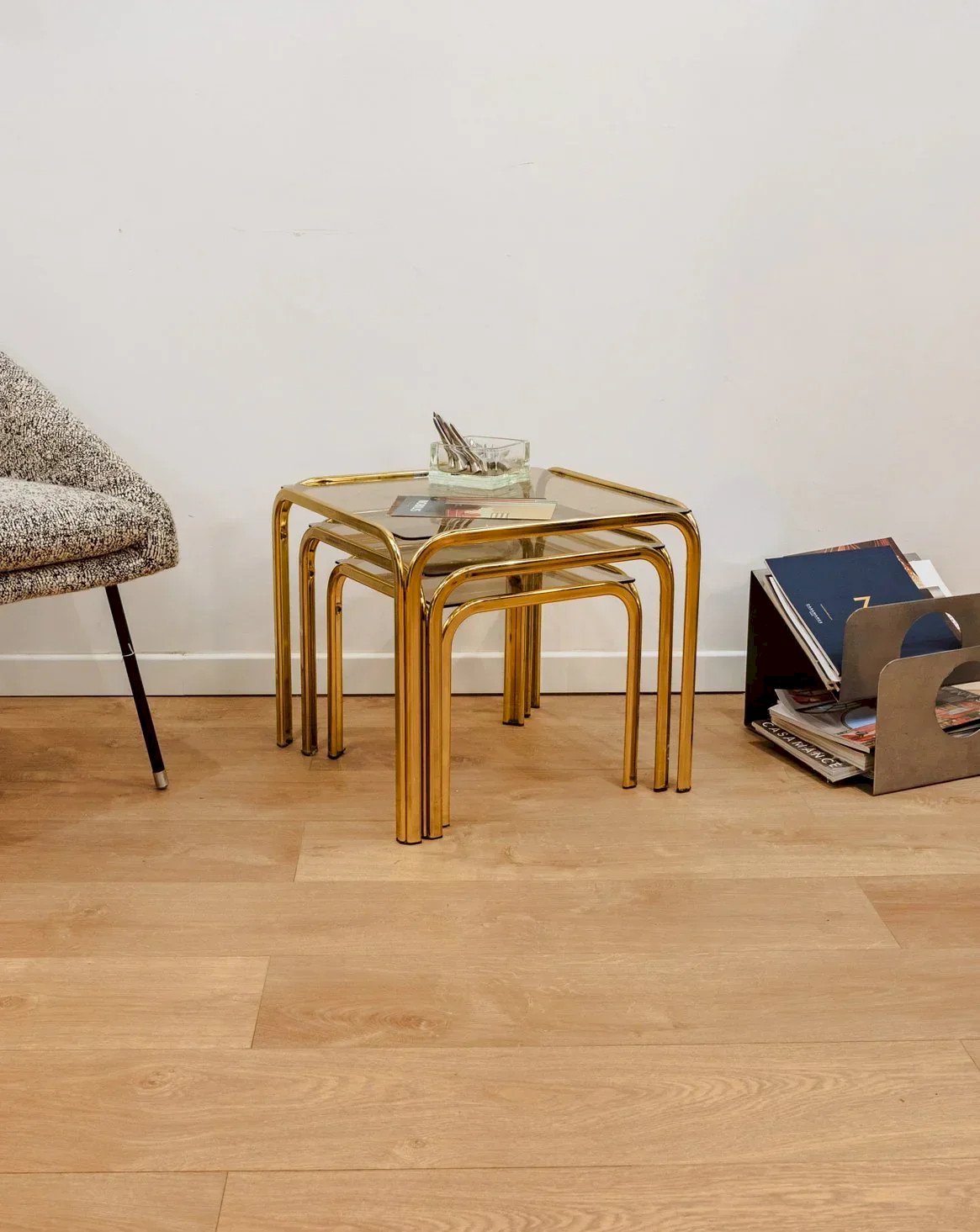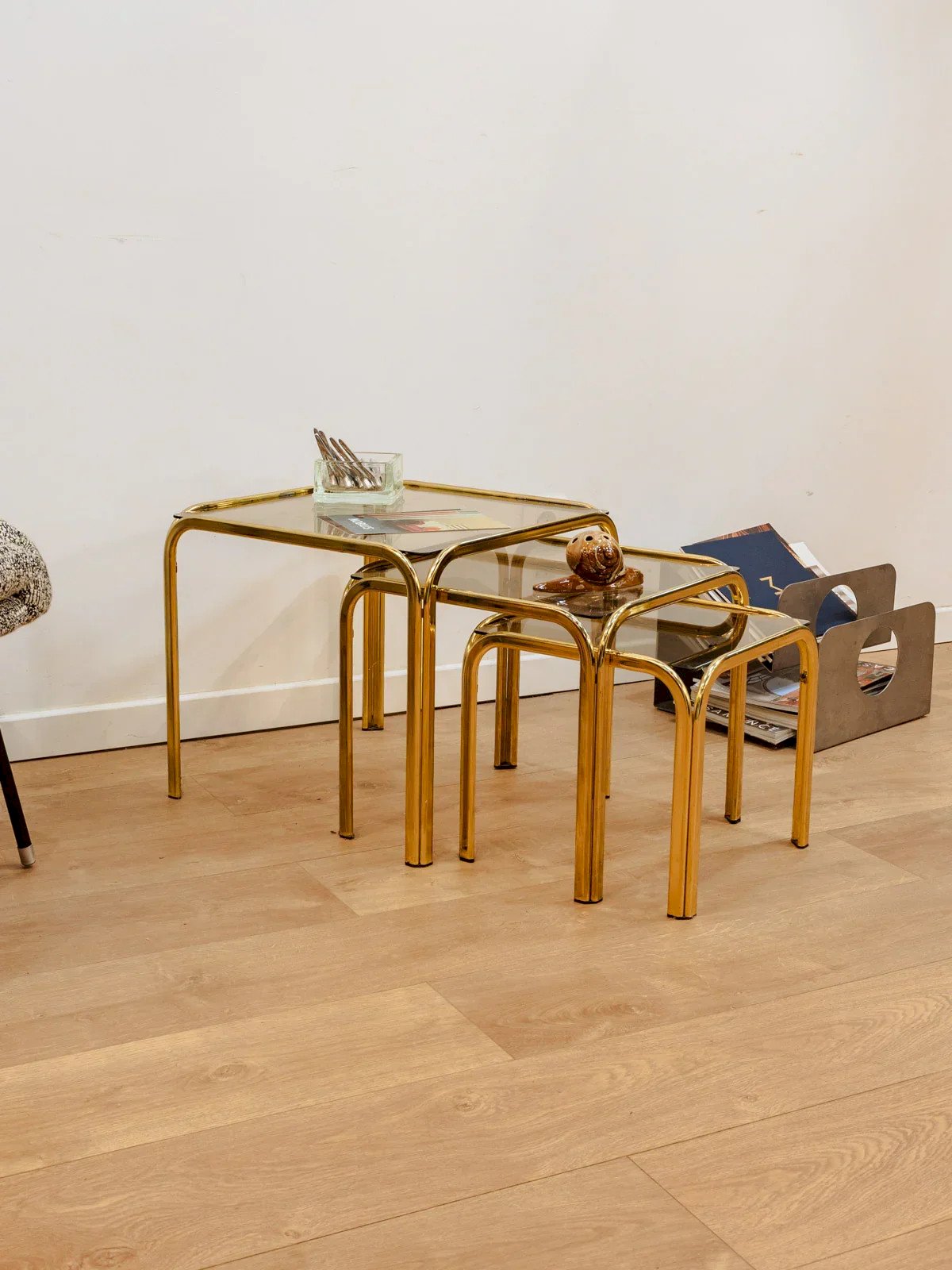 Barbara, les tables gigognes dorées en verre N°137