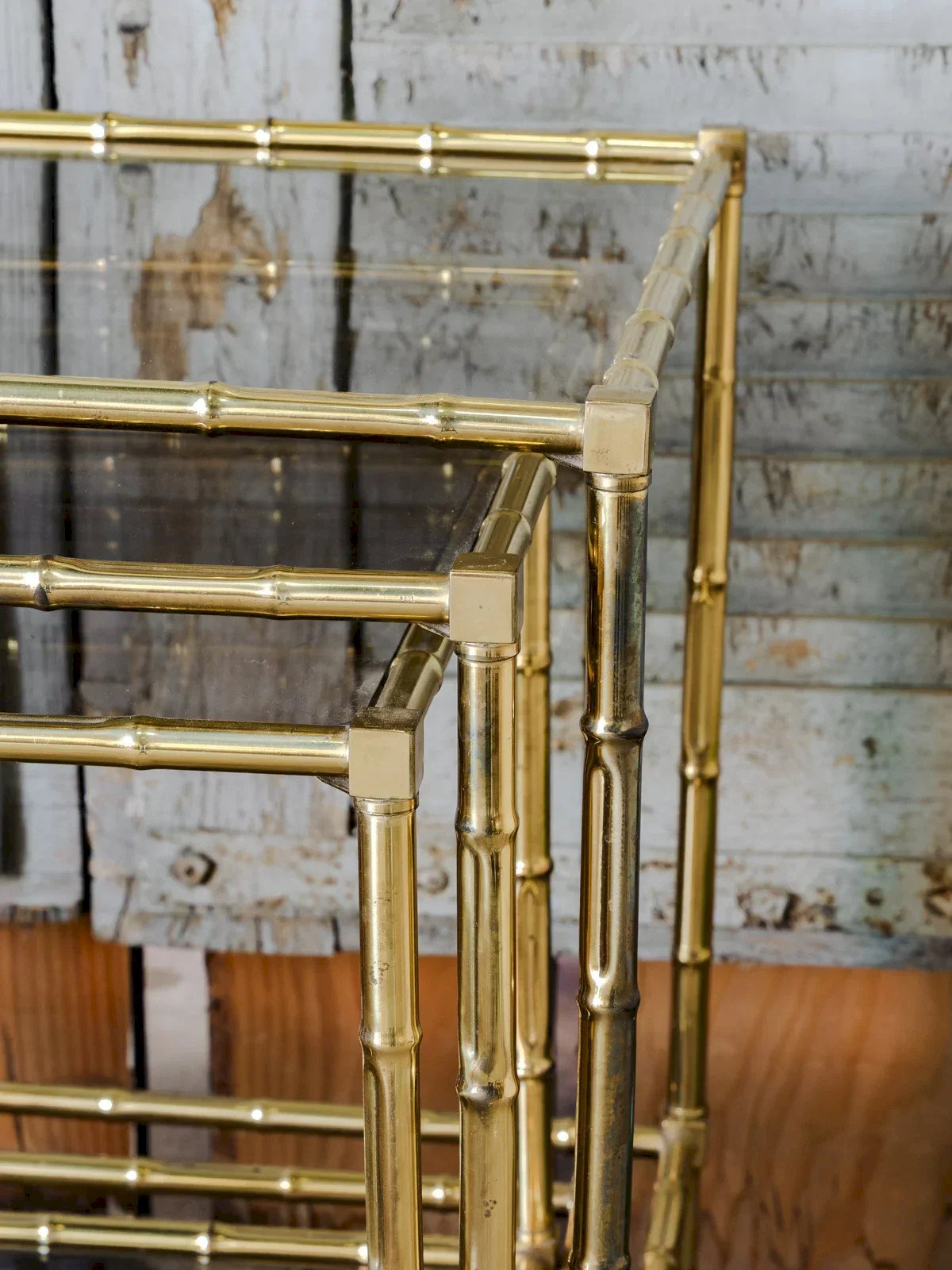 Barbara, les tables gigognes en laiton doré et verre fumé N°138