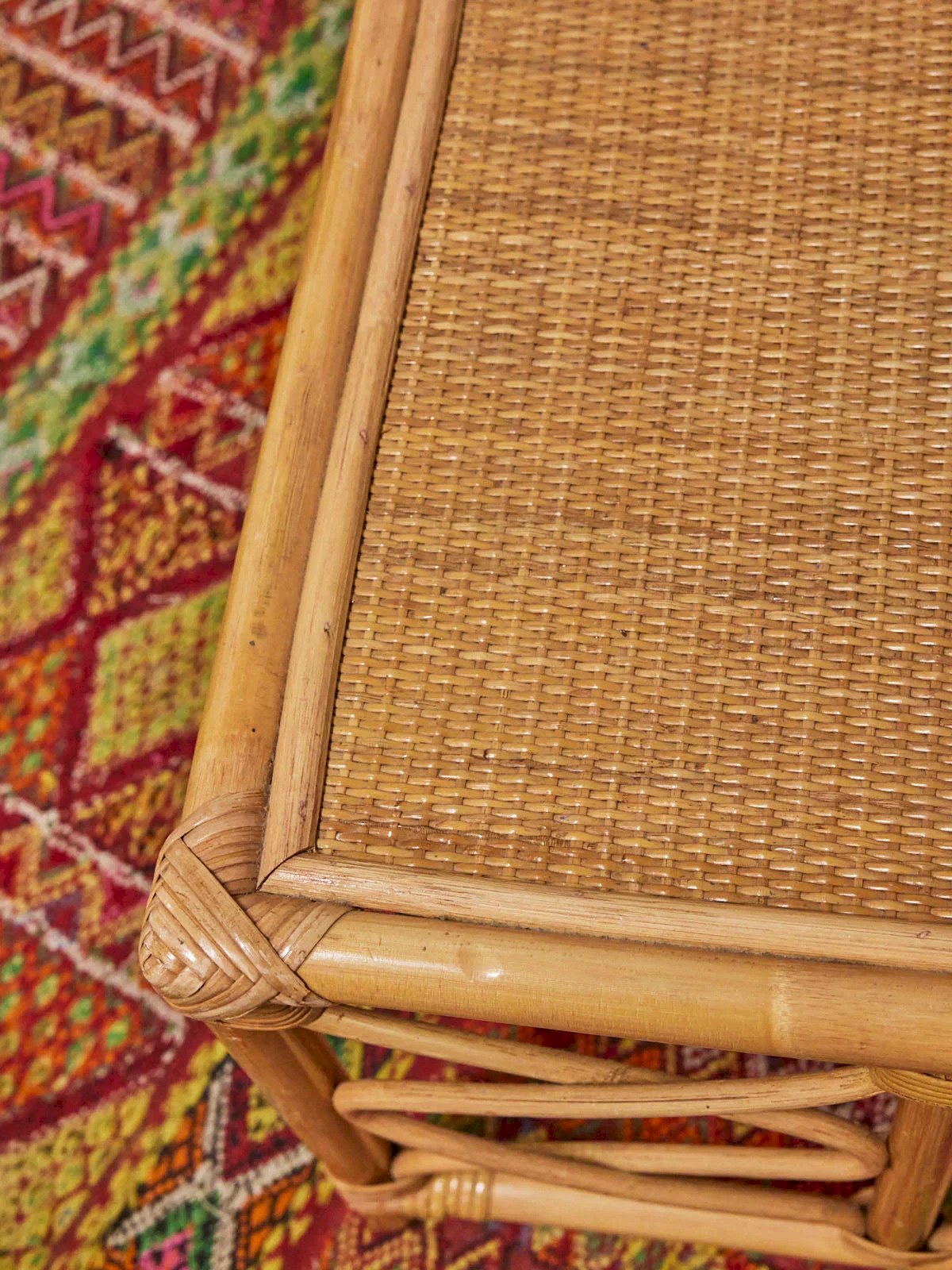 Adoptez ces tables gigognes en osier au tressage soigné, qui apportent une touche naturelle et élégante à votre intérieur. Pensées pour se glisser les unes sous les autres, elles offrent des surfaces d'appoint modulables pour poser lampes, plantes ou revues, tout en optimisant l'espace. Leur finition chaleureuse et leurs proportions légères se prêtent aussi bien à un salon bohème qu'à une véranda lumineuse. L'ensemble crée une atmosphère douce et organisée, idéale pour un intérieur serein. Taille L : Longueur : 45 cm Largeur : 50 cm Hauteur : 40 cm Taille M : Longueur : 40 cm Largeur : 42 cm Hauteur : 32 cm Taille S : Longueur : 33 cm Largeur : 37 cm Hauteur : 25 cm État:Occasion: Objet ayant été utilisé. Objet présentant quelques marques d'usure superficielle, ...Occasion: Objet ayant été utilisé. Objet présentant quelques marques d'usure superficielle, entièrement opérationnel et fonctionnant correctement. Il peut s'agir d'un modèle de démonstration ou d'un objet retourné en magasin après une courte période d'utilisation. les éventuelles imperfections. Marque:Debongout Type:Produit chiné Matériau:Osier Style:Contemporain Personnalisé:Tables gigognes