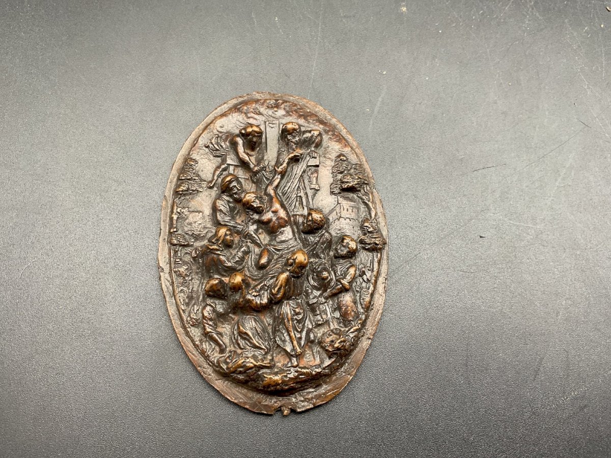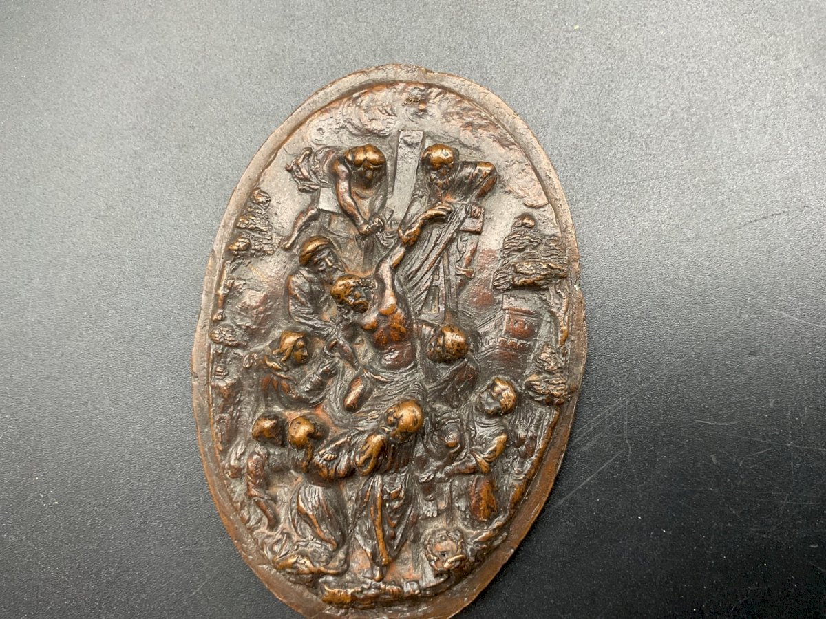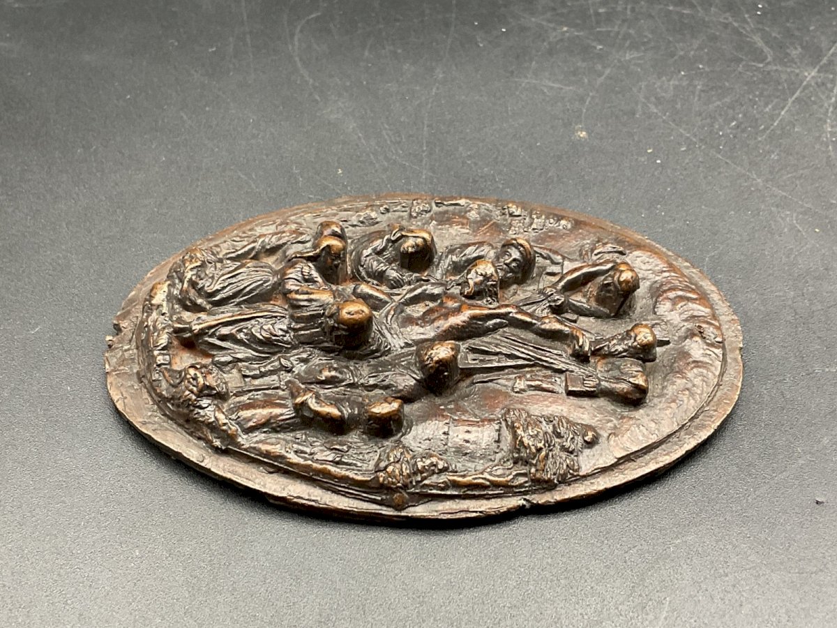 Bas relief religieux  Dimension : 8,5 x 6 cm Authenticité:Original Type:Objet de vitrine, Décoratif Origine:France Sous-type:Figurine, Statue Style:Antiquité Matière:Bronze