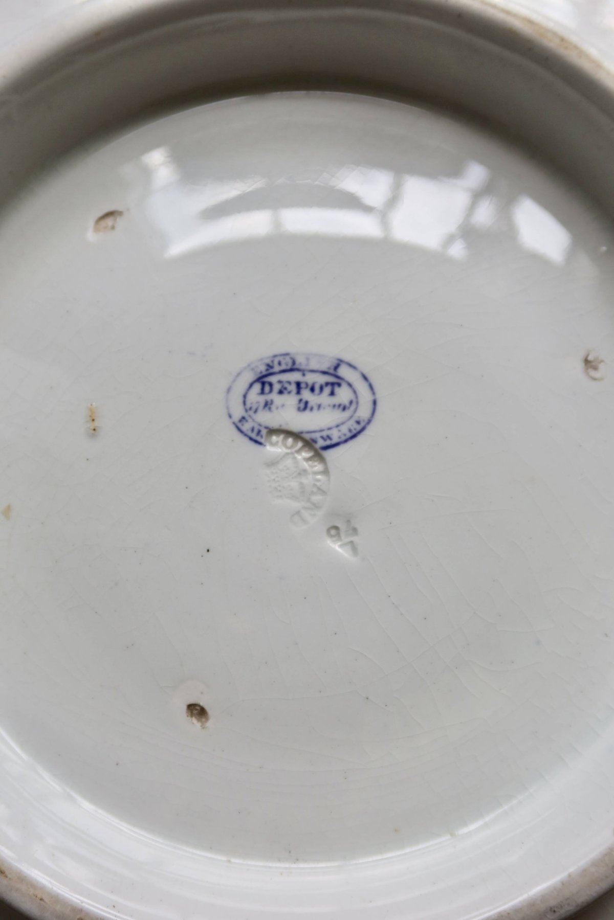 Bassine ancienne en faïence blanche et violette - Décor floral Céramique
