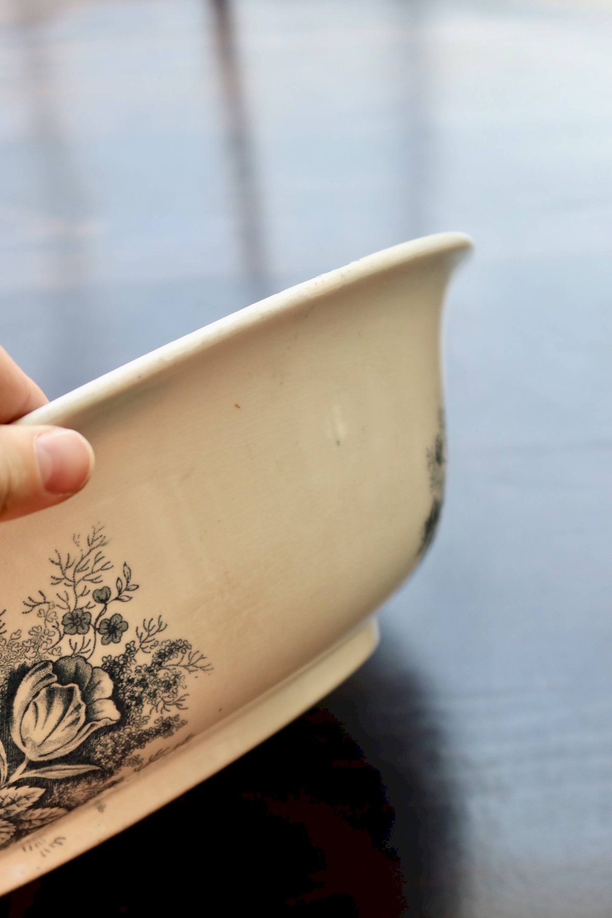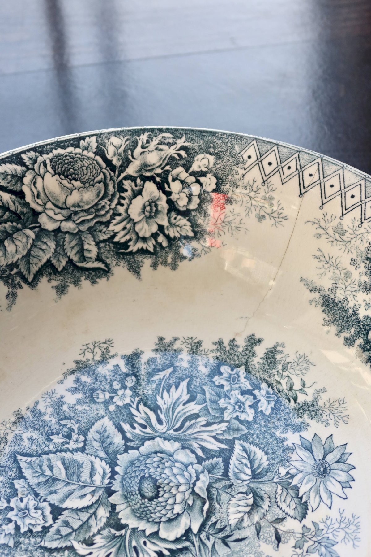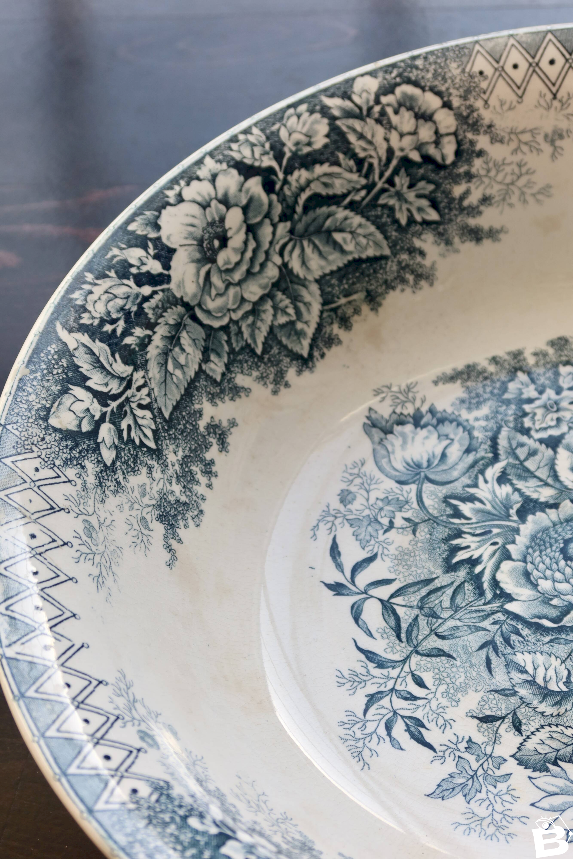 Bassine ou grand saladier ancien Hamage Nord – Modèle Jardinière bleu
