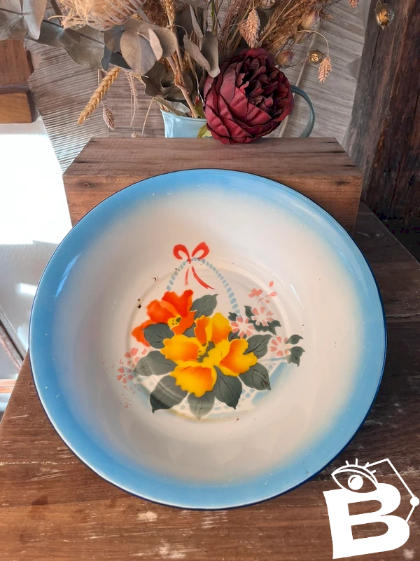 Bassine en tôle émaillée chinoise vintage.