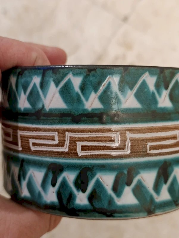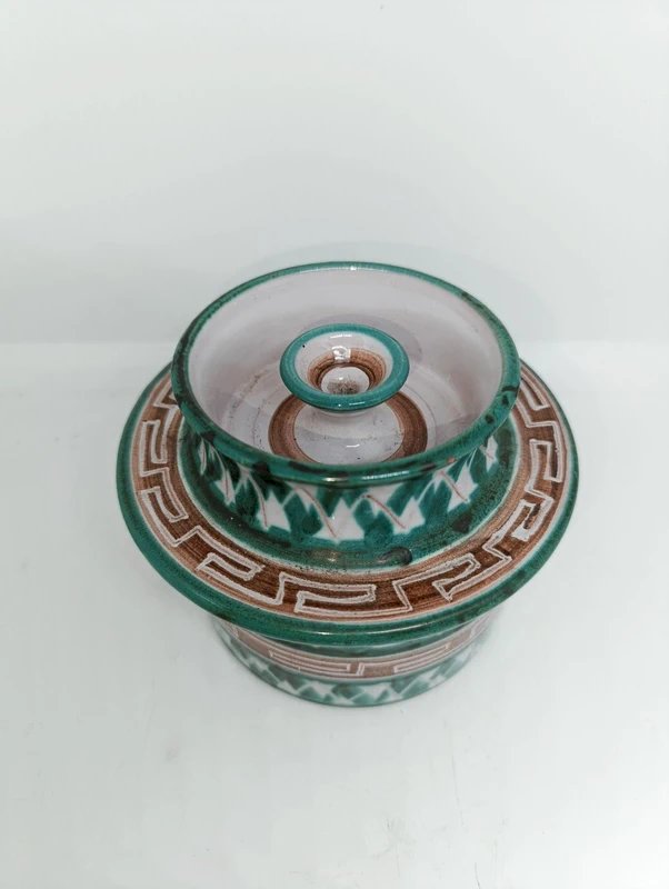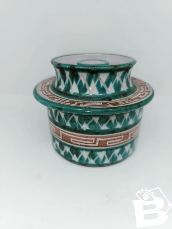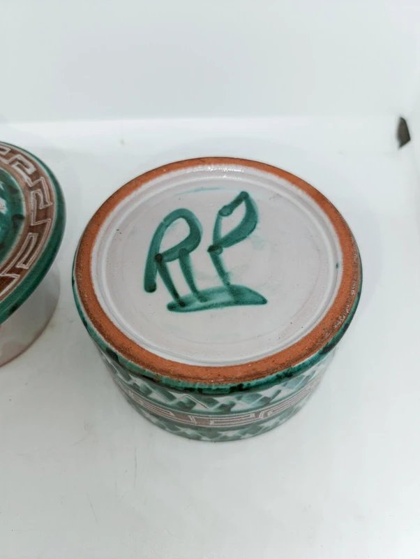 beau beurrier à eau design signé Robert Picault en bon etat juste une ou deux petites egrenures d'usages,un cheveu et patines normales du temps diametre 13cm et hauteur 10cm...