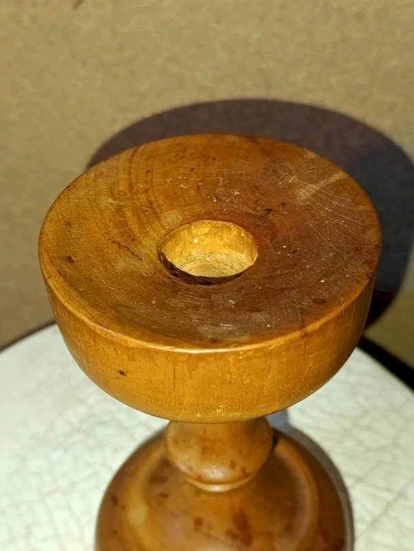 beau bougeoir en bois tourne brutaliste en bon etat usures et teintes normales du bois du a son age hauteur 17cm epoque a definir