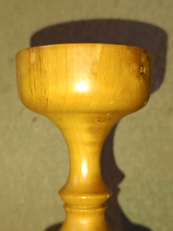 beau bougeoir en bois tourne brutaliste en bon etat