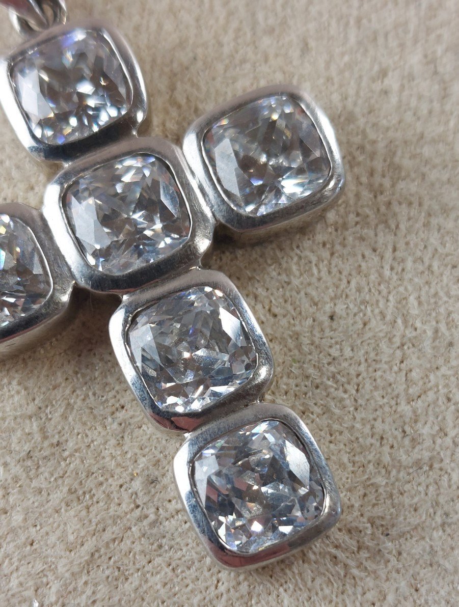 Beau pendentif, croix religieuse strass, en métal argenté en bon état non marqué dimensions 3,6 cm X 2,7 cm v oir photos  Consultez mes autres objets  !  réduction des frais de port en cas d'achat groupé État:OccasionObjet ayant été porté. les éventuelles imperfections.