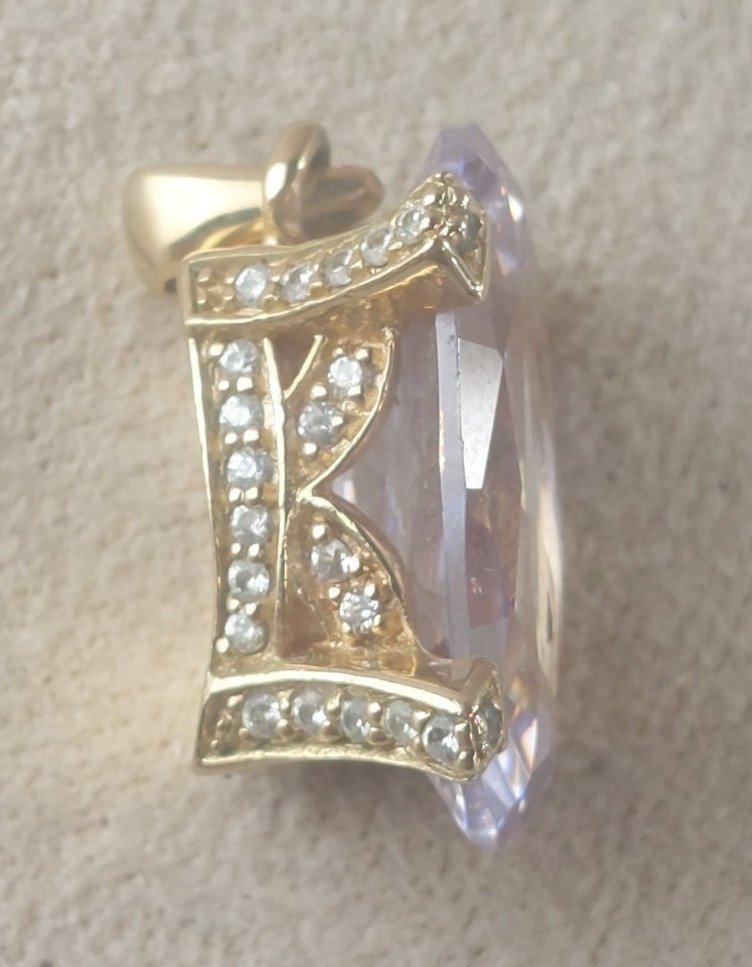 Beau pendentif strass mauve, en métal doré