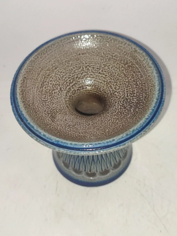 beau petit bougeoir en gres allemand signé Paul Kruft en bon etat Bleu