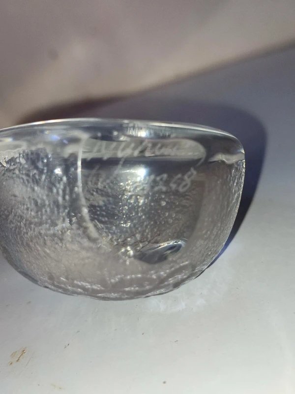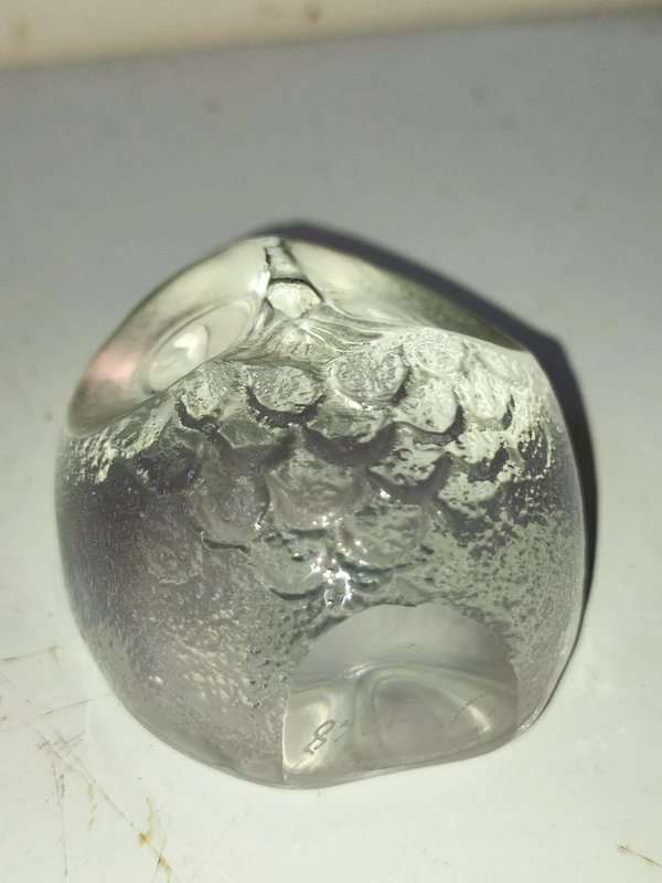 beau presse papier en forme d'hibou taillé signé Mats Jonasson en bon etat artiste reconnu en Suède numéroté en dessous dimension 6X5.5cm hauteur 3cm...