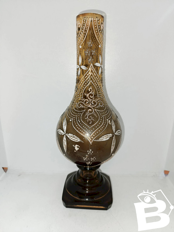 vase/ bouteille en verre avec decor floral emaillé style legras en bon etat