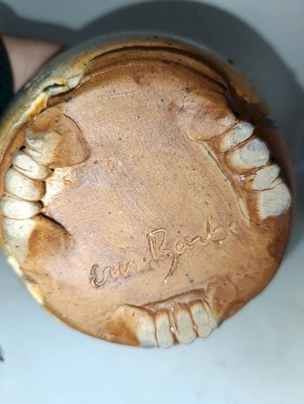 beau vase boule en gres signé cris barbe en bon etat tres decoratif et beau travail hauteur 18cm