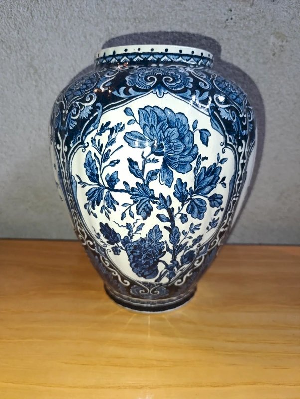 beau vase delfts royal sphinx bye boch en bon etat decor floral en camaieu bleu petites usures normales du temps hauteur 25cm...