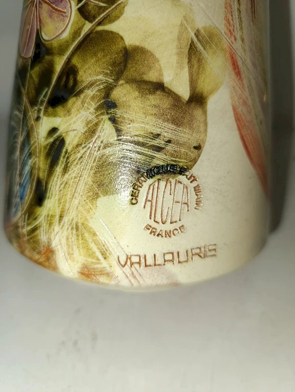 beau vase en ceramique à decor de fleur vallauris signé Alcea en bon etat