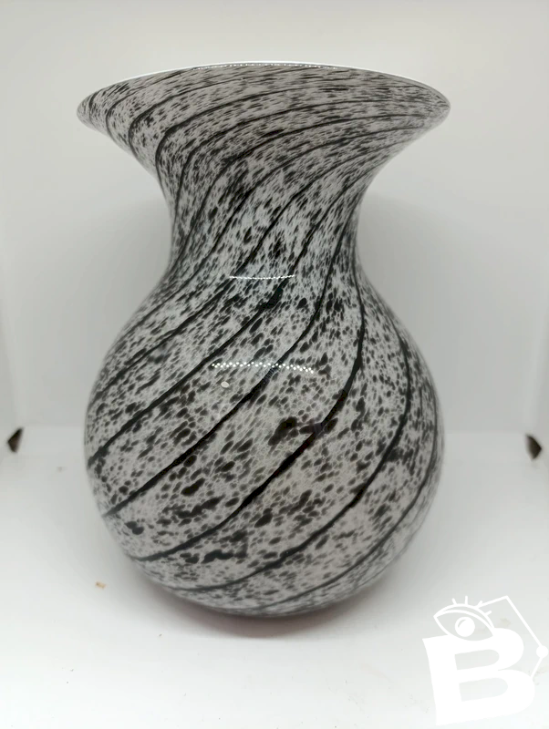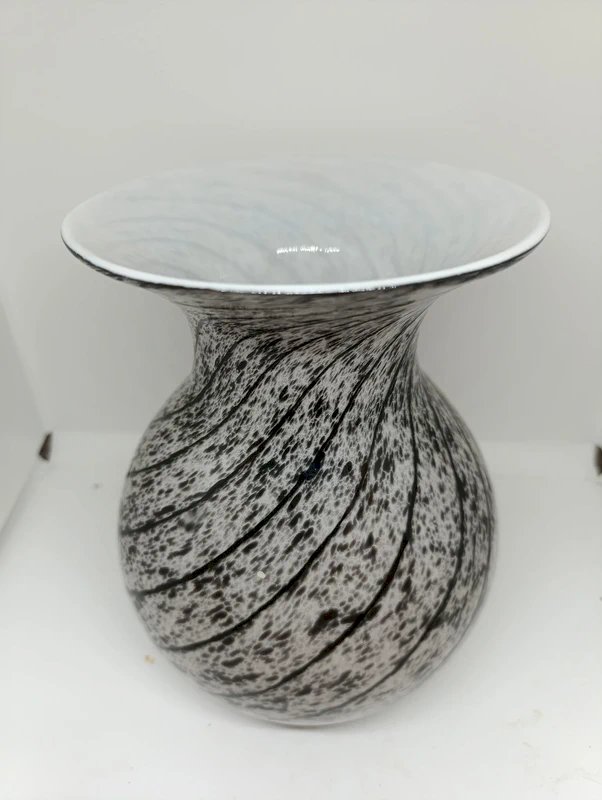 superbe grand vase mouchoir noir et blanc style murano en bon etat