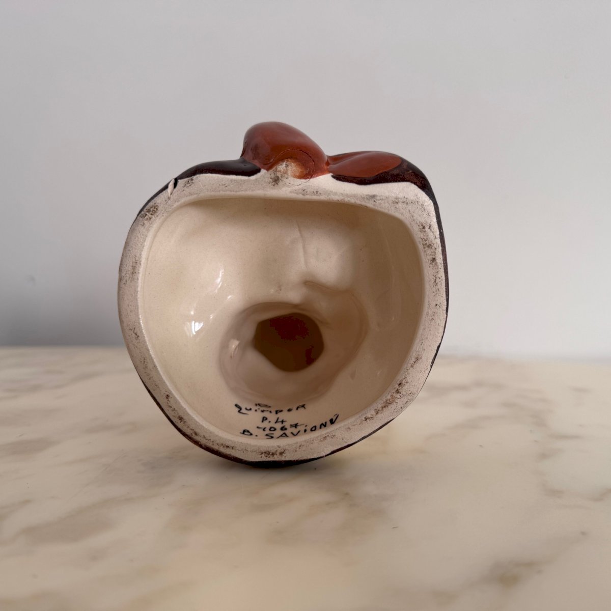 Bébé en céramique HB Quimper Berthe Savigny M3690 Cette céramique de Berthe Savigny (1882-1952) est ancienne. Notons des défauts à deux endroits , visibles sur l'arrière et sur la tranche , probablement des défauts de cuisson avec peut-être un recollage (nous les avons pris en photo). Nos photos vous permettent d'apprécier la qualité de l'objet. Pour l'état, merci de bien détailler les photos. N'hésitez pas à zoomer . Les photos font partie intégrante de la description. Dimensions : Hauteur : 12 cm Largeur : 9,5 cm Profondeur : 11 cm P :  1648057   Je reste à votre disposition pour toute question.