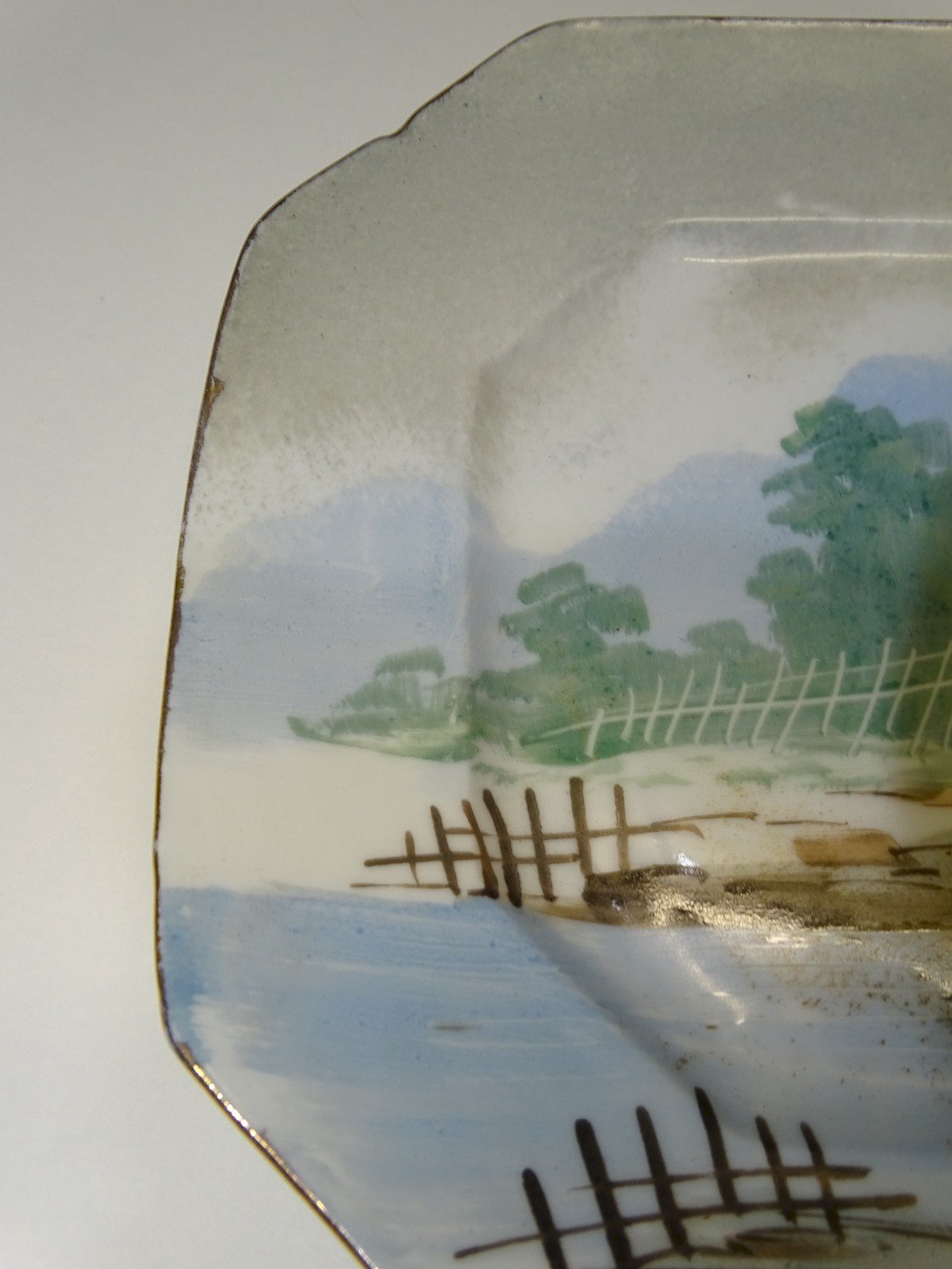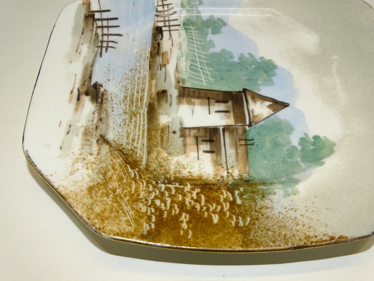 belle ancienne assiette décorative en porcelaine à décor d'un paysage peint - 1 metit défaut d'origine sur le bord - jus de trouvailles - en bon état d'usage (voir photos) - Réf. 1V240718/471 - 19,8 x 19,8 cm - Poids 289 g - Pour me contacter mon adresse mail : EXPEDITION POSSIBLE EN MONDIAL RELAY ou COLISSIMO sur demande TRES BON EMBALLAGE GARANTI MERCI de BIEN REGARDER TOUTES les PHOTOS car ELLES FONT PARTIE INTEGRANTE de la DESCRIPTION et PERMETTENT de VOIR l'OBJET AU MIEUX avec SES PETITS DEFAUTS EVENTUELS -