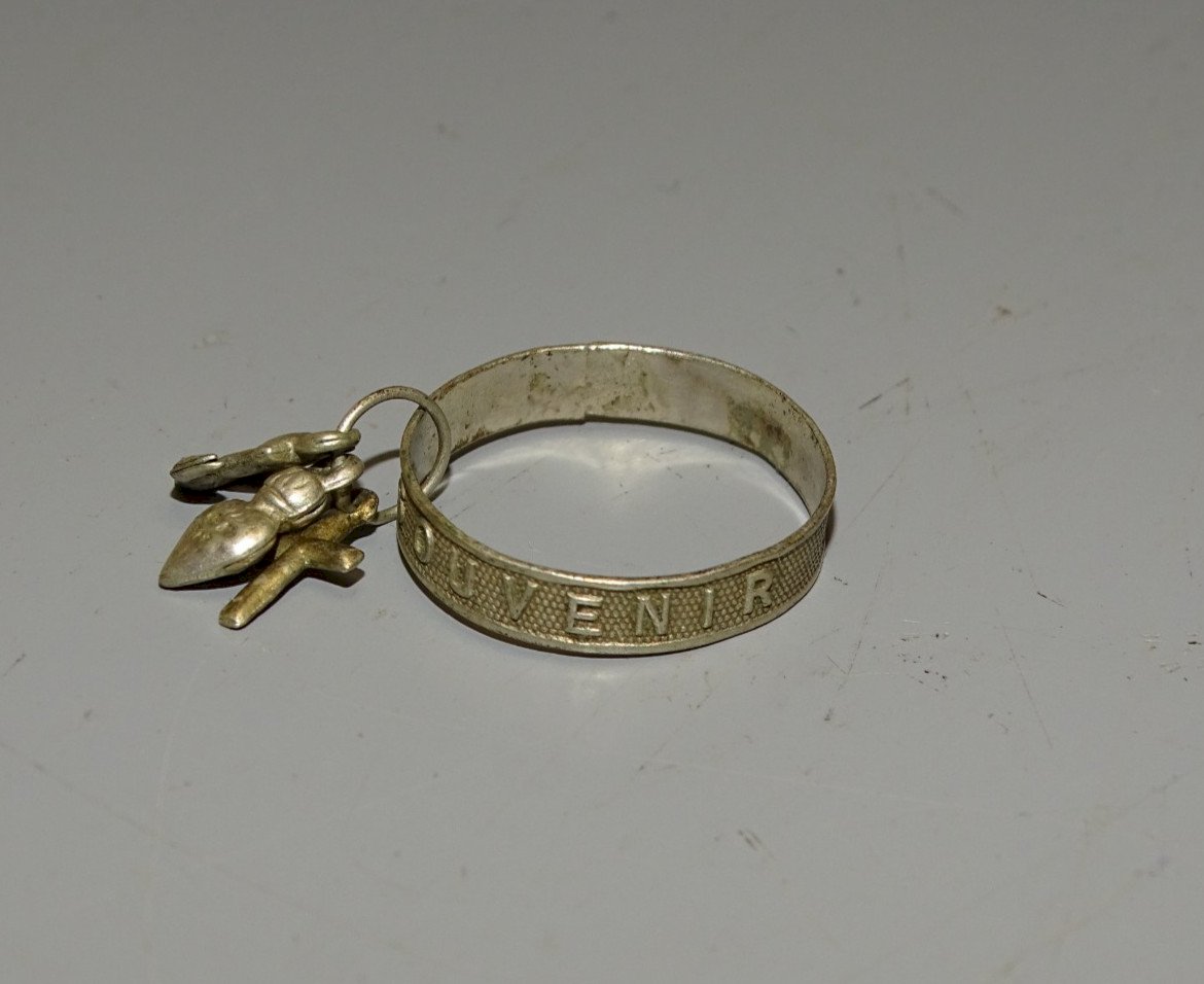 -BELLE ANCIENNE BAGUE SOUVENIR AVEC 3 BRELOQUES ARGENT Poinçon SANGLIER D