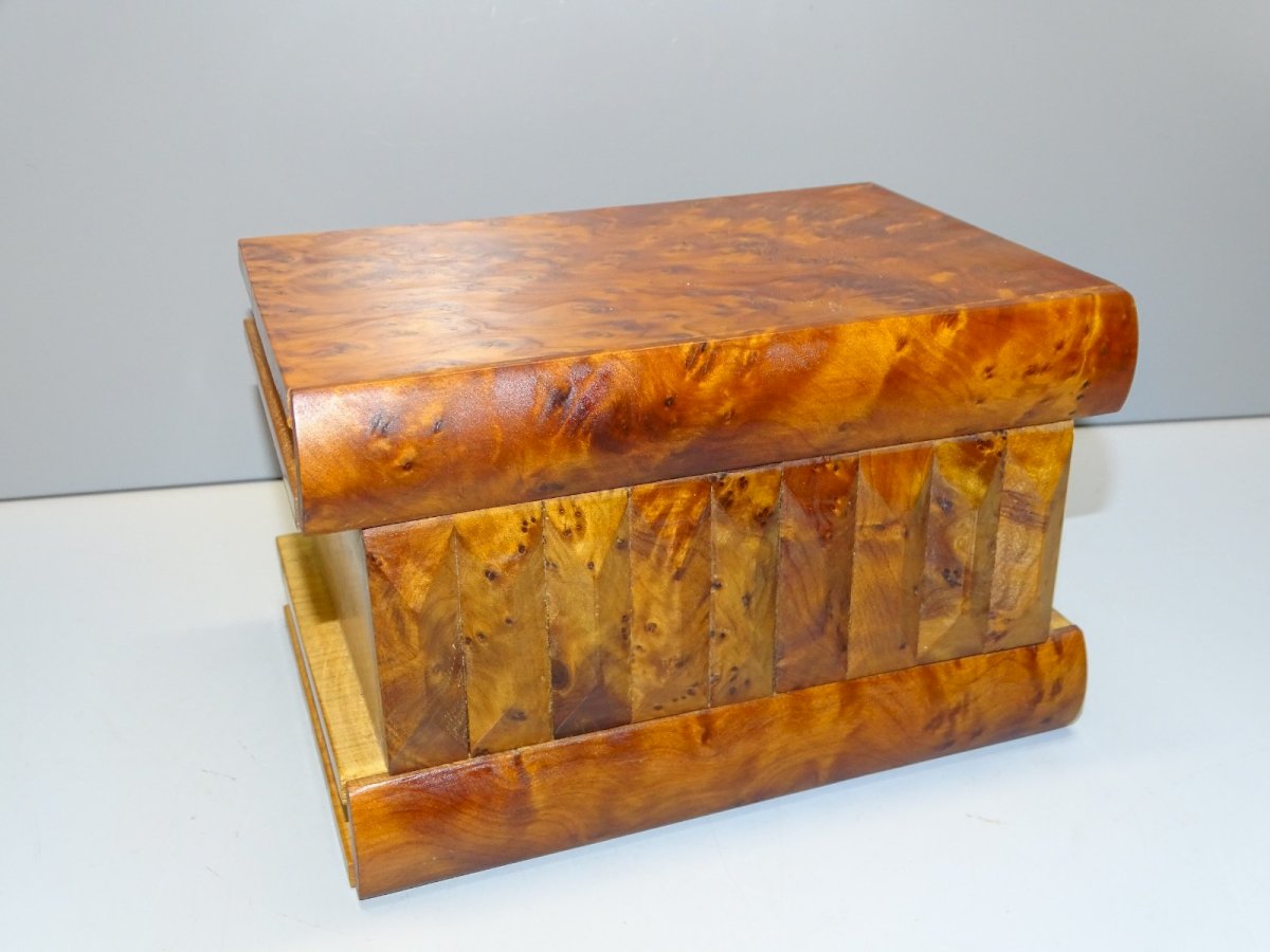 Belle boite en bois faux livres avec petite ouverture à secrets au fond - avec sa clé qui fonctionne - en bois loupe de Tuya - belle patine   (photos) - pur jus de trouvailles, sortie de grenier -  Réf. 1V250703/146  17,9 x 12,6 cm - Hauteur 11,4 cm - Poids 0,781 kg     Pour me contacter mon adresse mail : EXPEDITION POSSIBLE EN MONDIAL RELAY ou COLISSIMO sur demande TRES BON EMBALLAGE GARANTI     MERCI de BIEN REGARDER TOUTES les PHOTOS car ELLES FONT PARTIE INTEGRANTE de la DESCRIPTION et PERMETTENT de VOIR l'OBJET AU MIEUX  avec SES PETITS DEFAUTS EVENTUELS - Matière:Bois