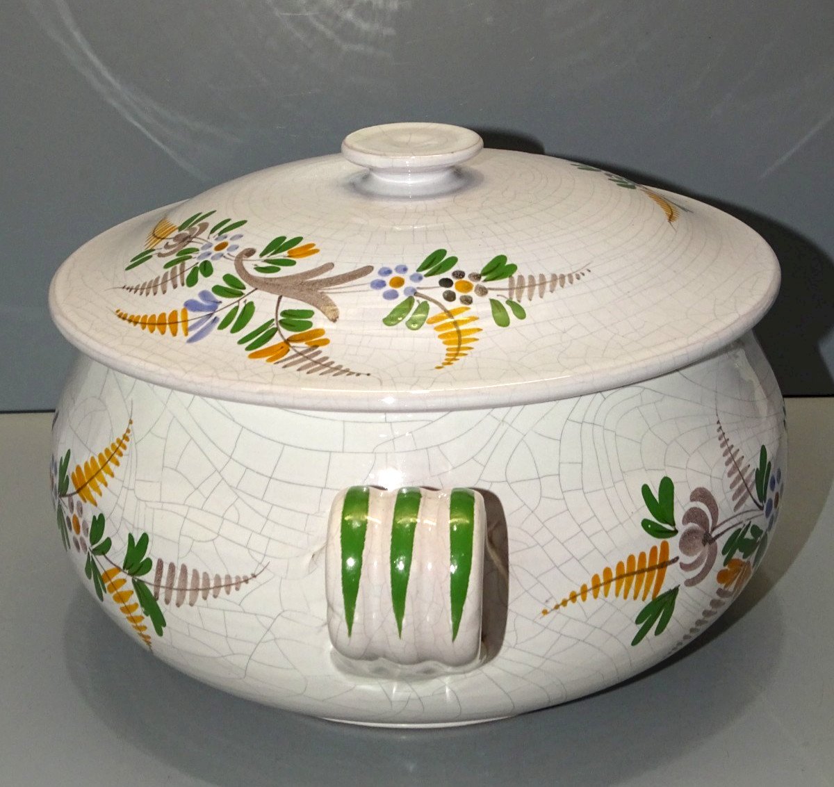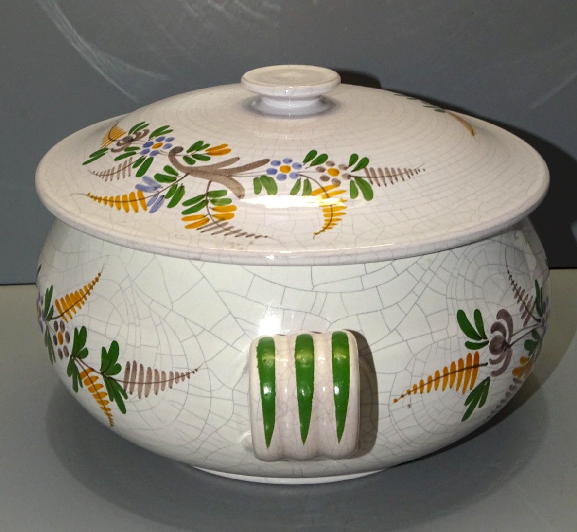 Belle soupière céramique La Salardaise HRG - avec un joli décor de craquelures feuilles de fougères et fleurs ( voir photos ) - jus de trouvailles,  sortie de grenier - en très bon état d'usage -  Réf.42141025/39  -  Hauteur max 16 cm - Longueur 30 cm - Diamètre max 23 cm - Diamètre bord 19,5 cm - Hauteur bord 11,5 cm - Poids 2 kg  -   EXPEDITION en Mondial Relay OU Colissimo possible sur demande   EMBALLAGE GARANTI très protecteur  MERCI de BIEN REGARDER TOUTES les PHOTOS car ELLES FONT PARTIE INTEGRANTE de la DESCRIPTION et PERMETTENT de VOIR l'OBJET AU MIEUX -