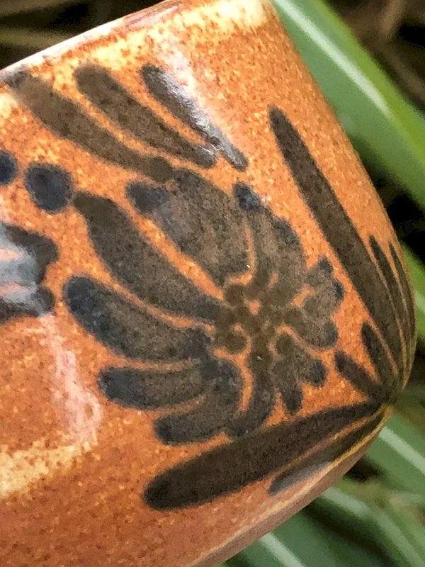 Beurrier verre marron et opaline beige, soucoupe et chapeau décorés de houx