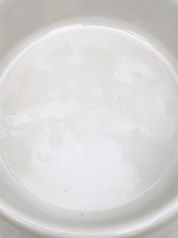 Petite cloche à beurre vintage en faïence blanche – Motif pomme bleue