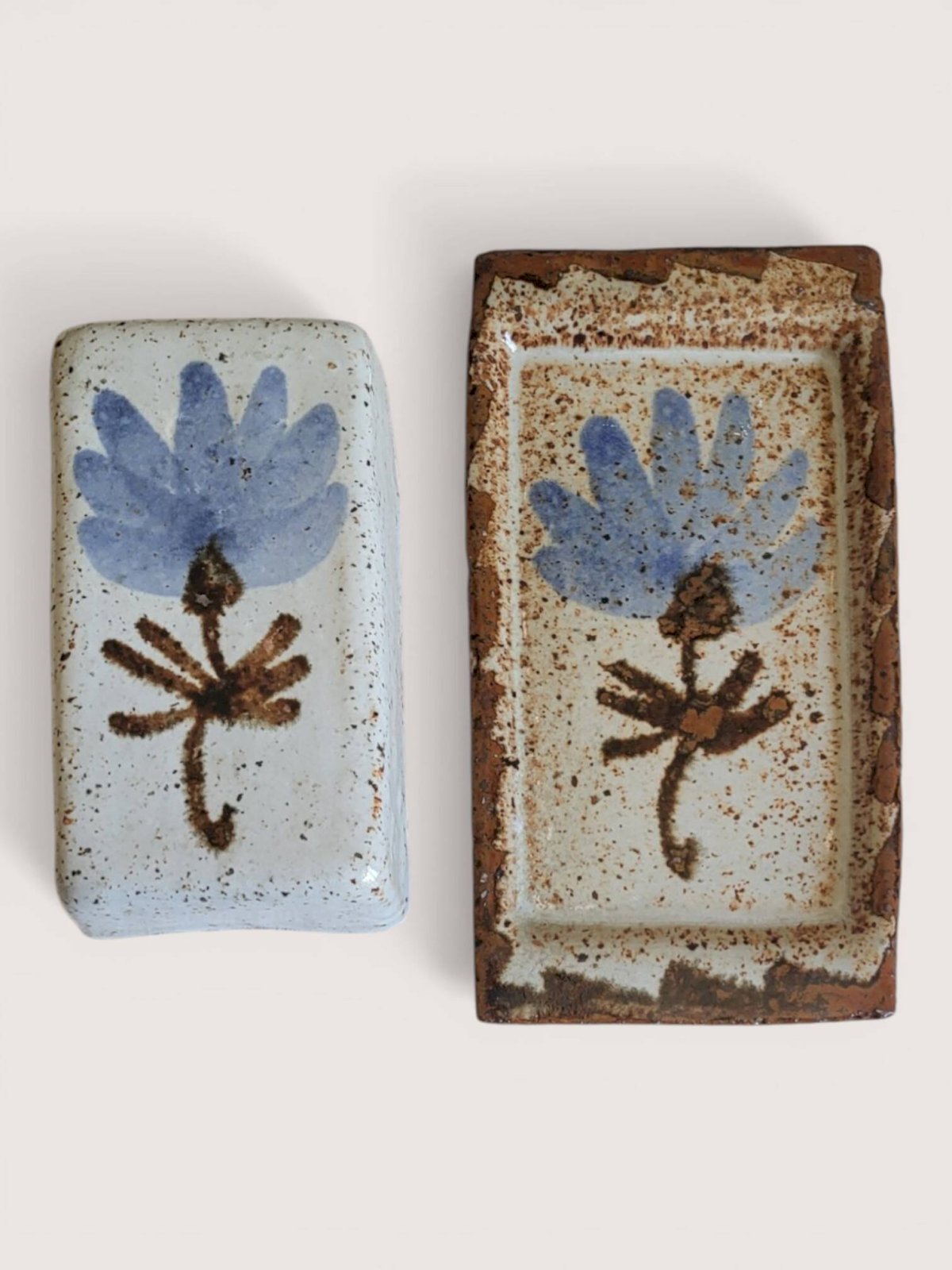 - Trio de beurriers individuels en grès, made in France, années 70