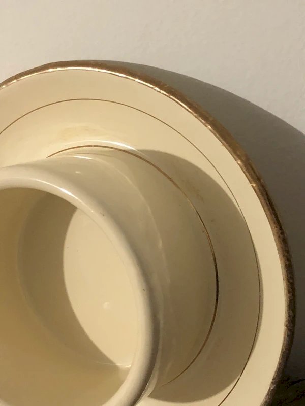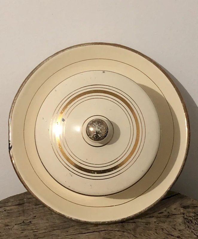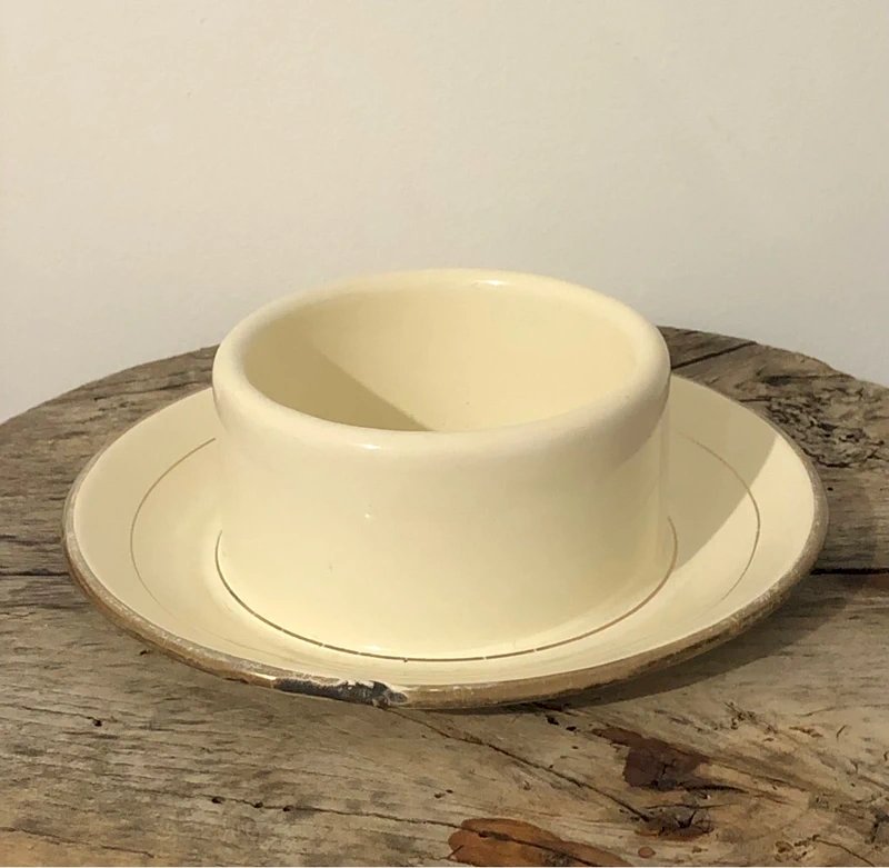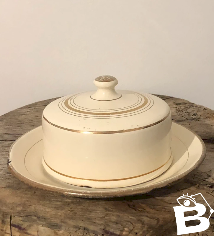 Beurrier rétro vintage en acier émaillée crème et doré