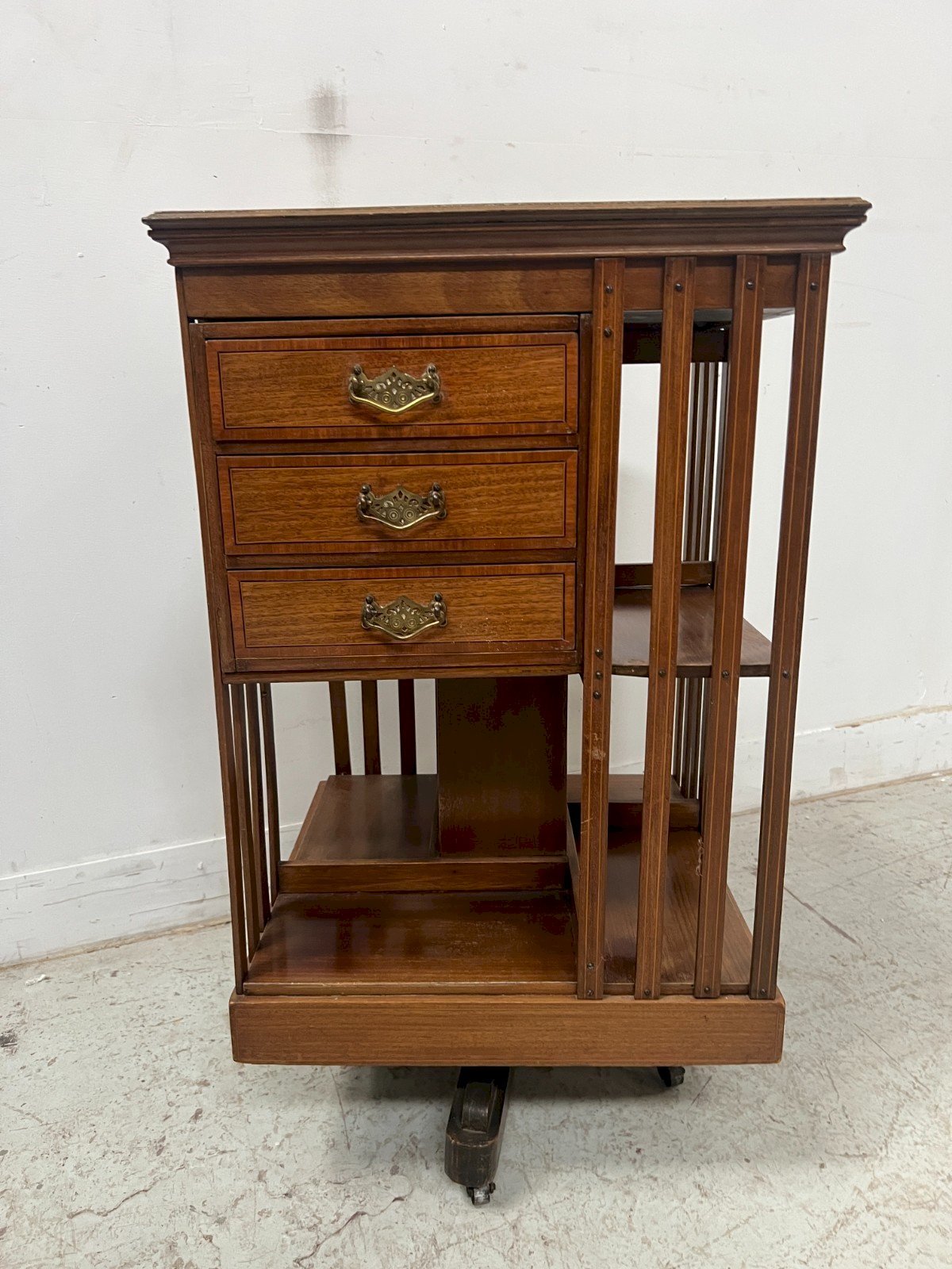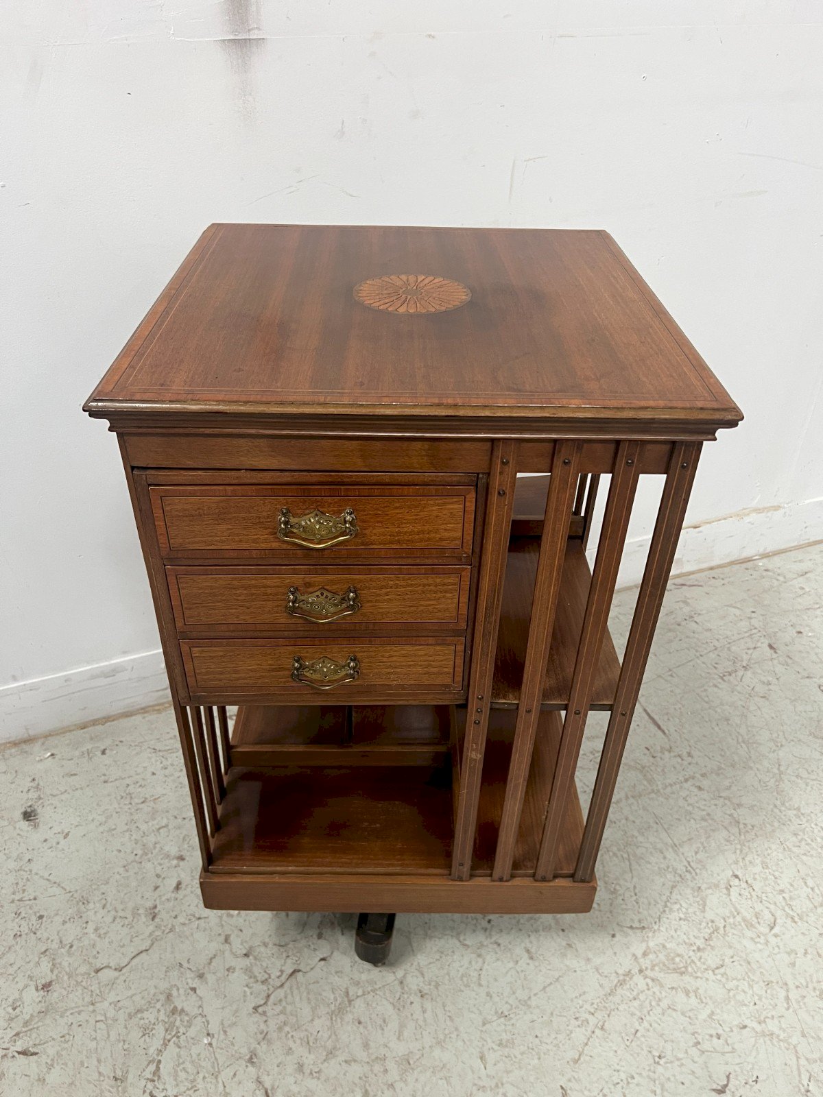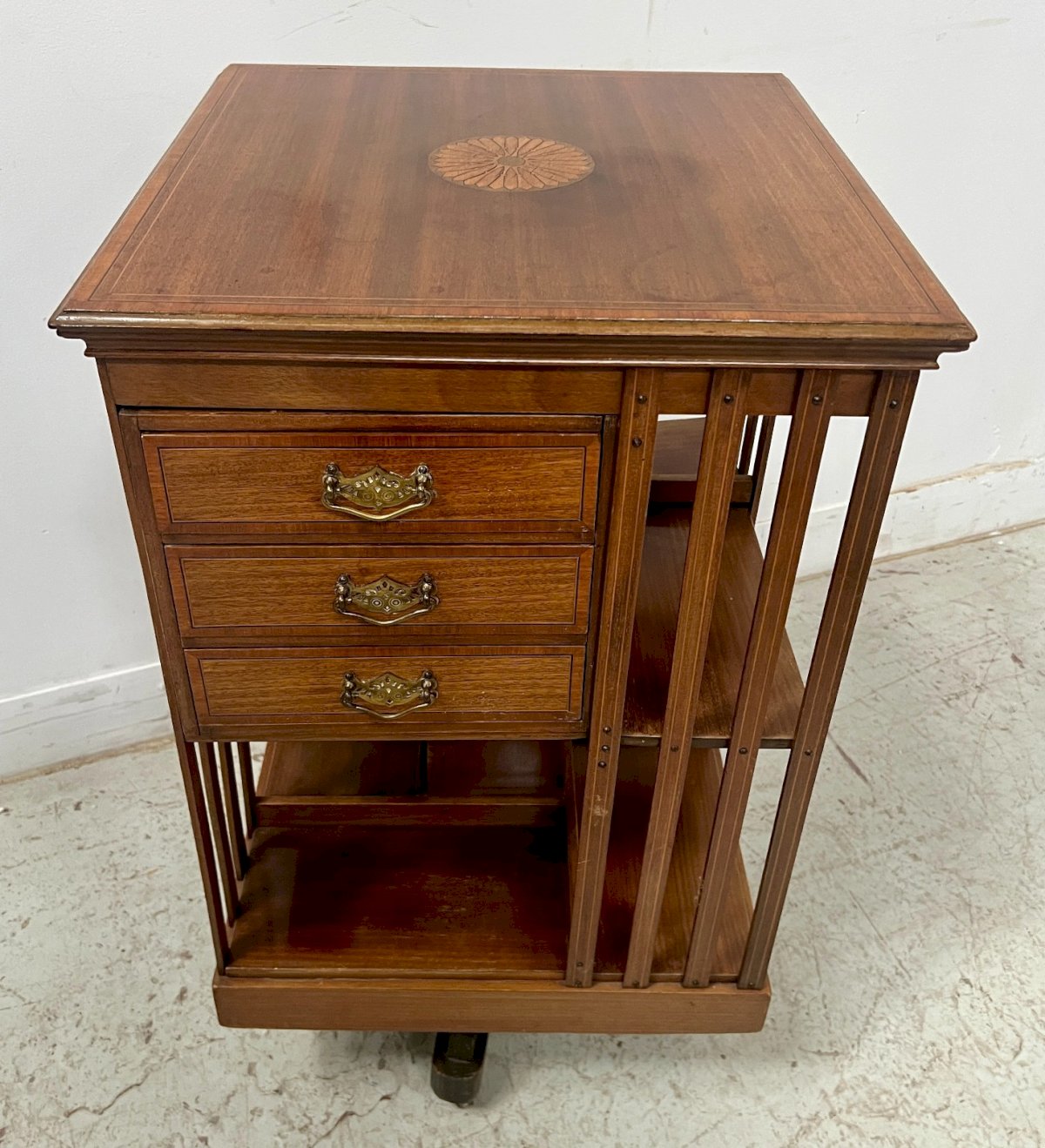 Bibliothèque Tournante En Acajou A Plateau Marqueté XX Siècle