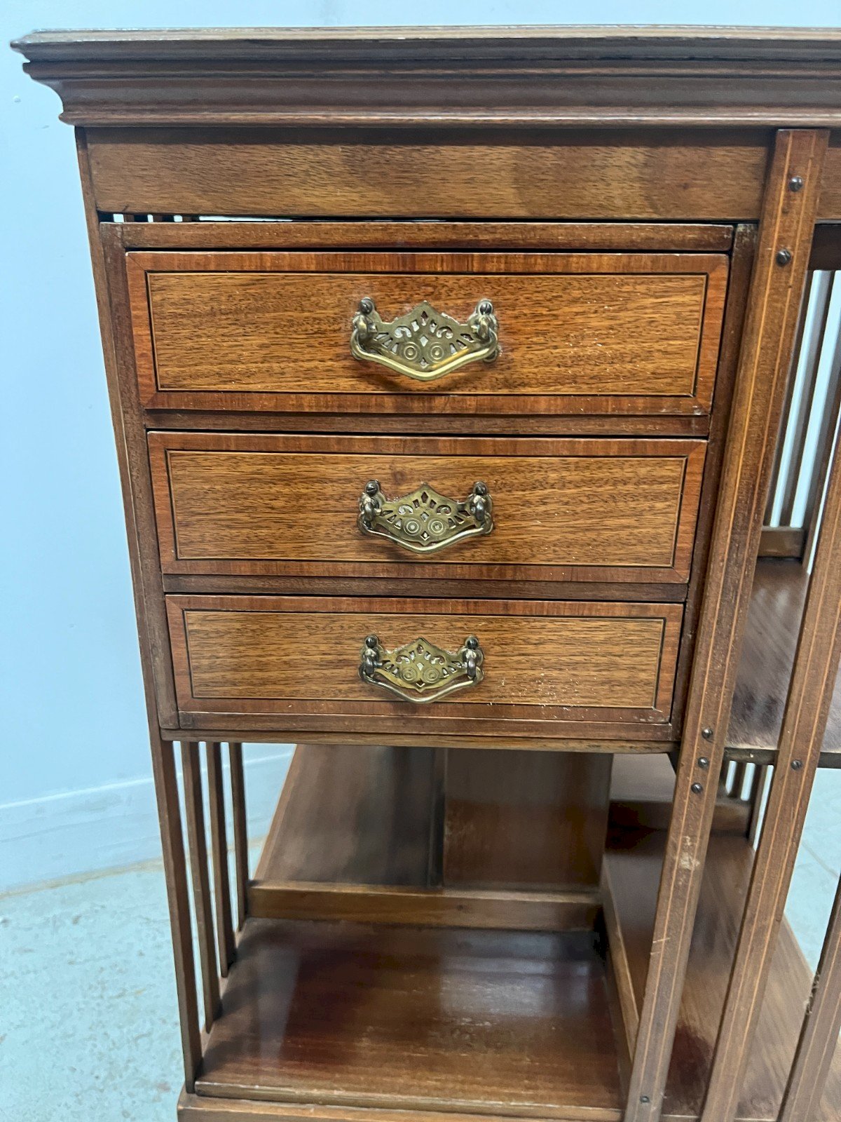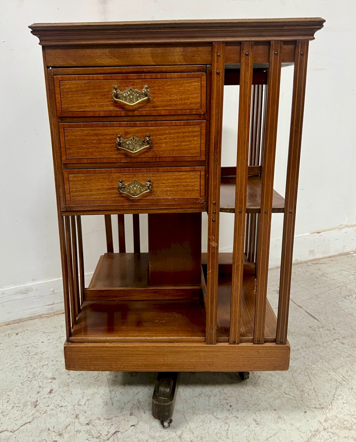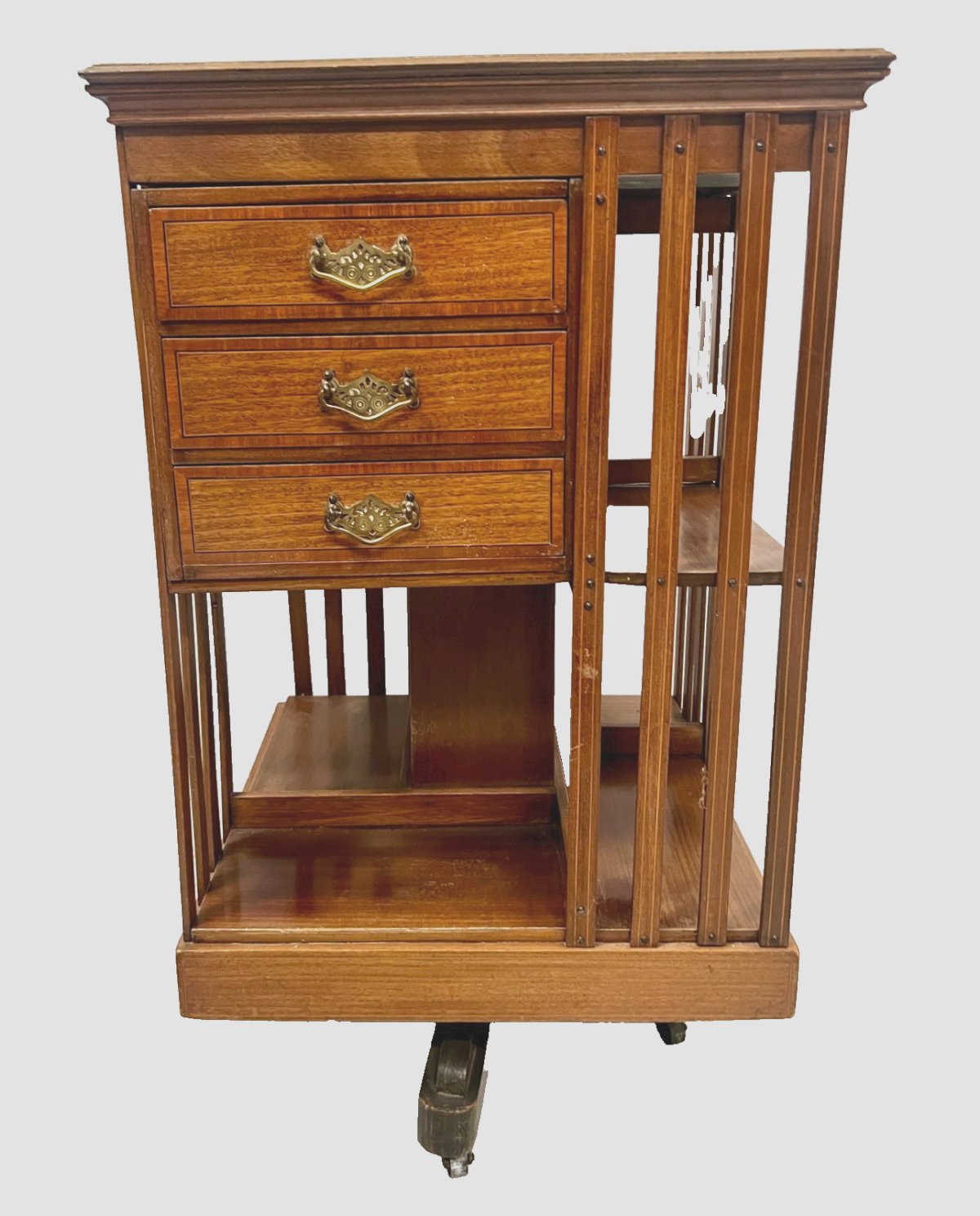 Bibliothèque Tournante En Acajou A Plateau Marqueté XX Siècle