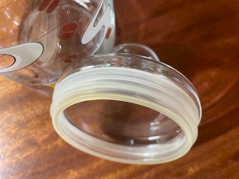 Bocal en verre au décor « Cafeum » caféier, tasses à café, grains de café Bouchon étanche Marque Luminarc (l’étiquette a été retirée) Hauteur 21cm