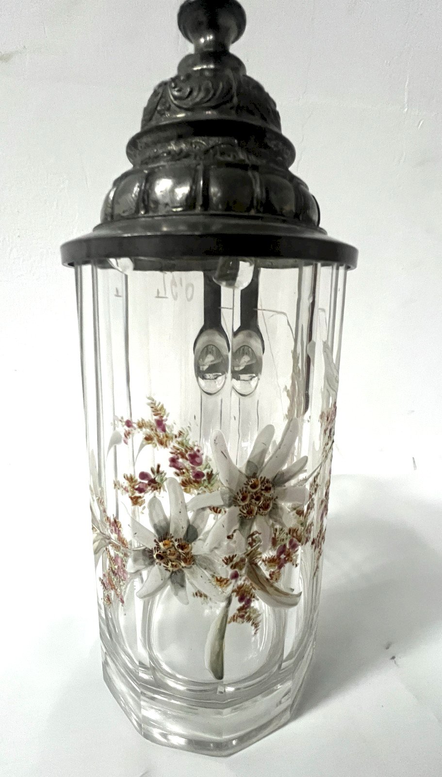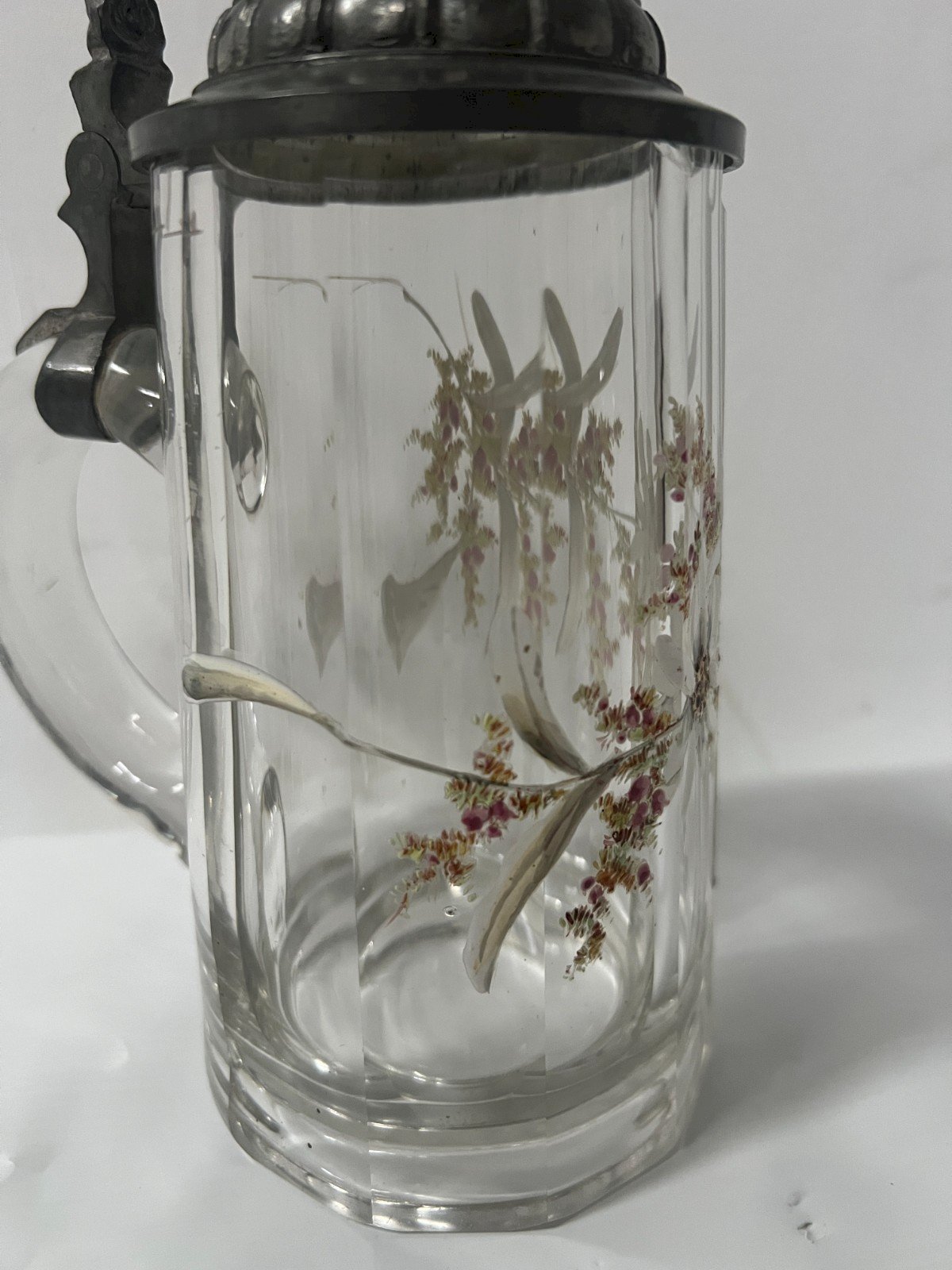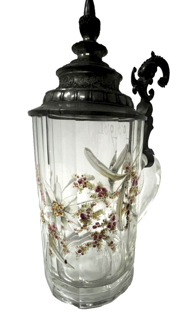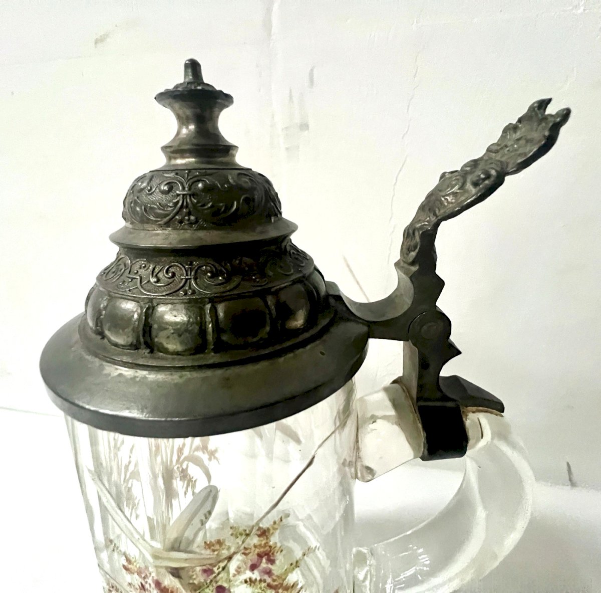Bock couvert a bière en verre émaillé La prise et le couvercle sont en étain  Le verre est a décor floral émaillé Deux éclats au col voir les photos  Dimension  H 21 x L 14 x 9 cm  XX siècle  Pour une livraison a l’international, me contacter merci   Nous essayons d’être le plus précis possible dans notre description N ' hésitez pas a nous poser toutes vos question avant de finaliser votre achat soit par mail ou au tel PETIT RAPPEL Le meilleur allié de la vente par correspondance reste le dialogue, c'est pour cela que je vous communique mon numéro de portable pour toutes questions pendant une vente mais aussi pour toutes interrogations pendant vos achats. Je répondrais volontiers à toutes vos questions, n'hésitez pas les photos tiennent lieu de descriptif Pour tout retour, les frais d'expédition et de retour resterons a la charge de l'acheteur État:OccasionObjet ayant été utilisé. les éventuelles imperfections. Type:Carafes Pays d'origine:France Matière:Verre