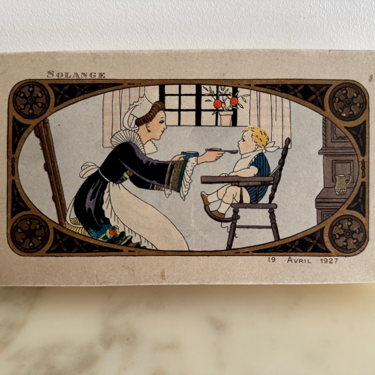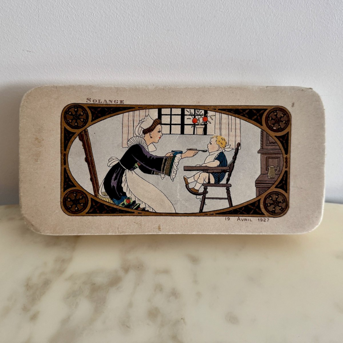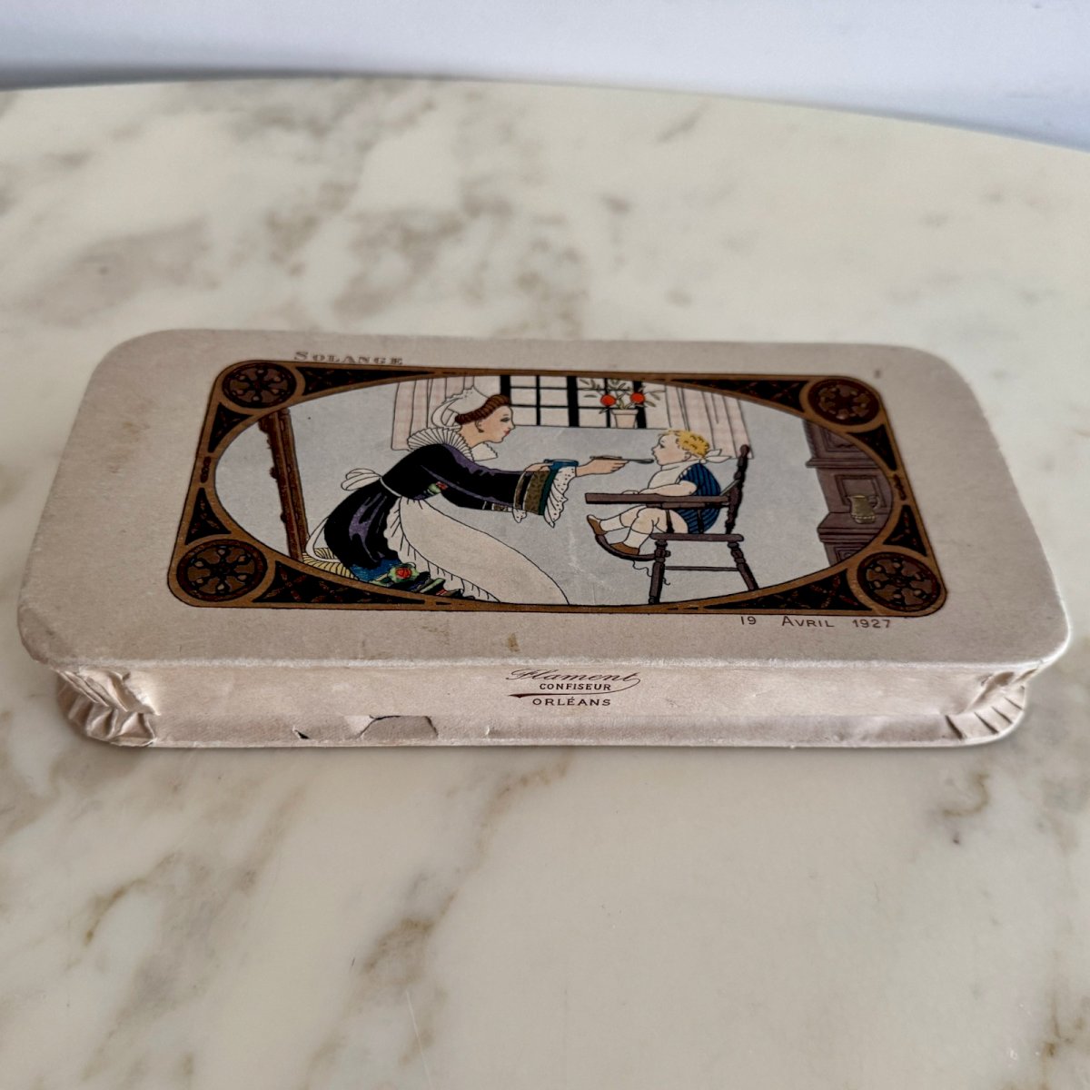 Boite 19 avril 1927 pour Flament Confiseur Orléans Solange et un bébé M3774