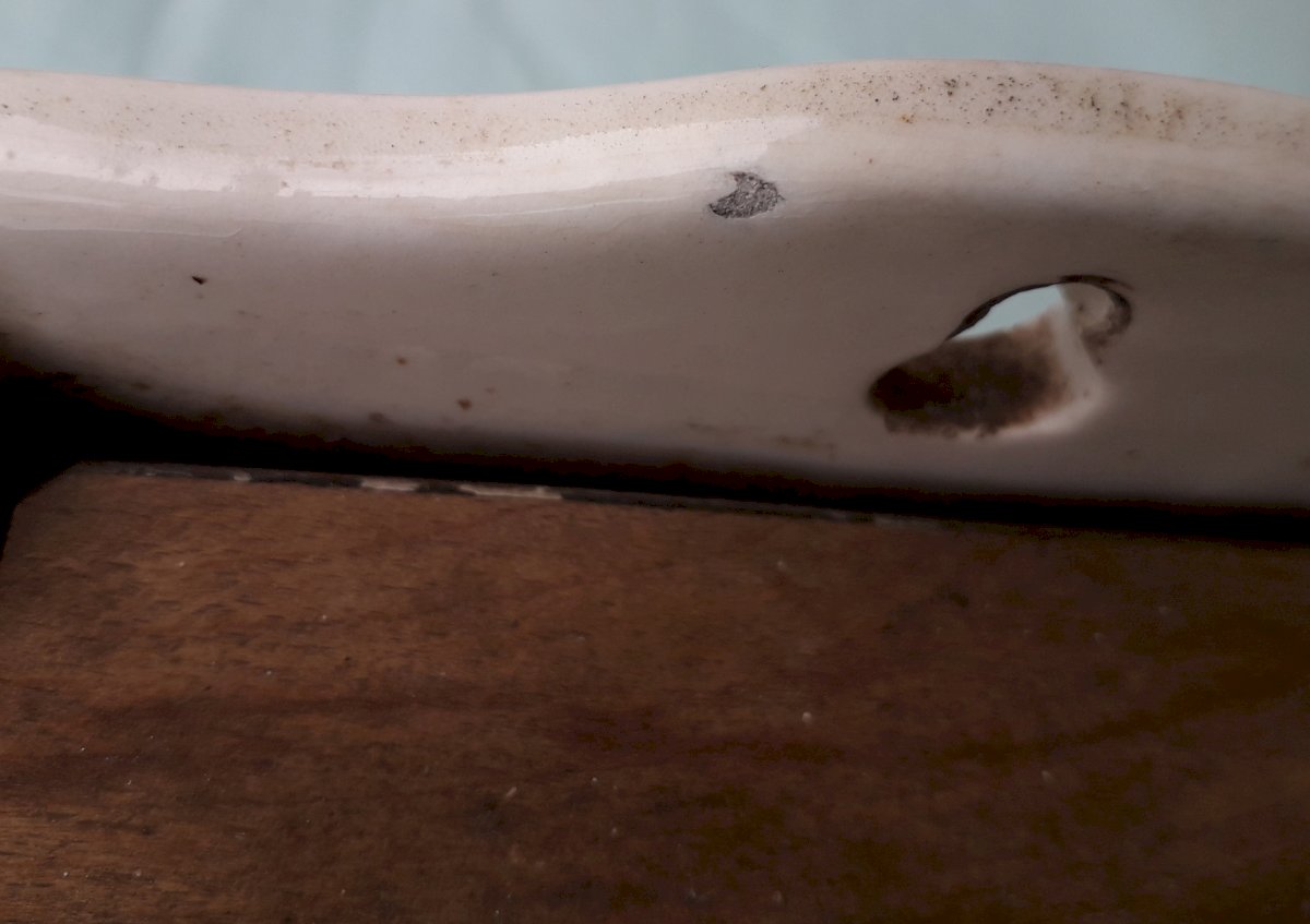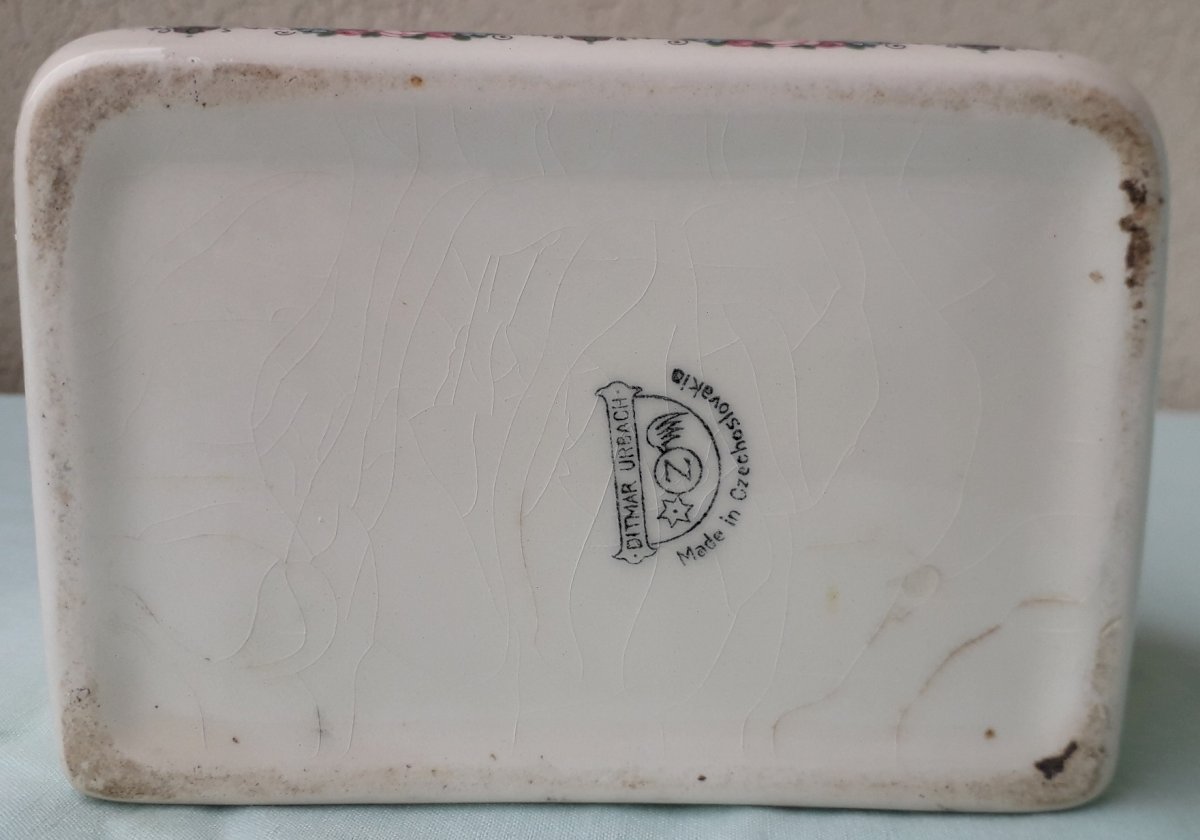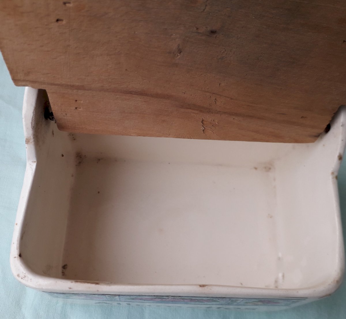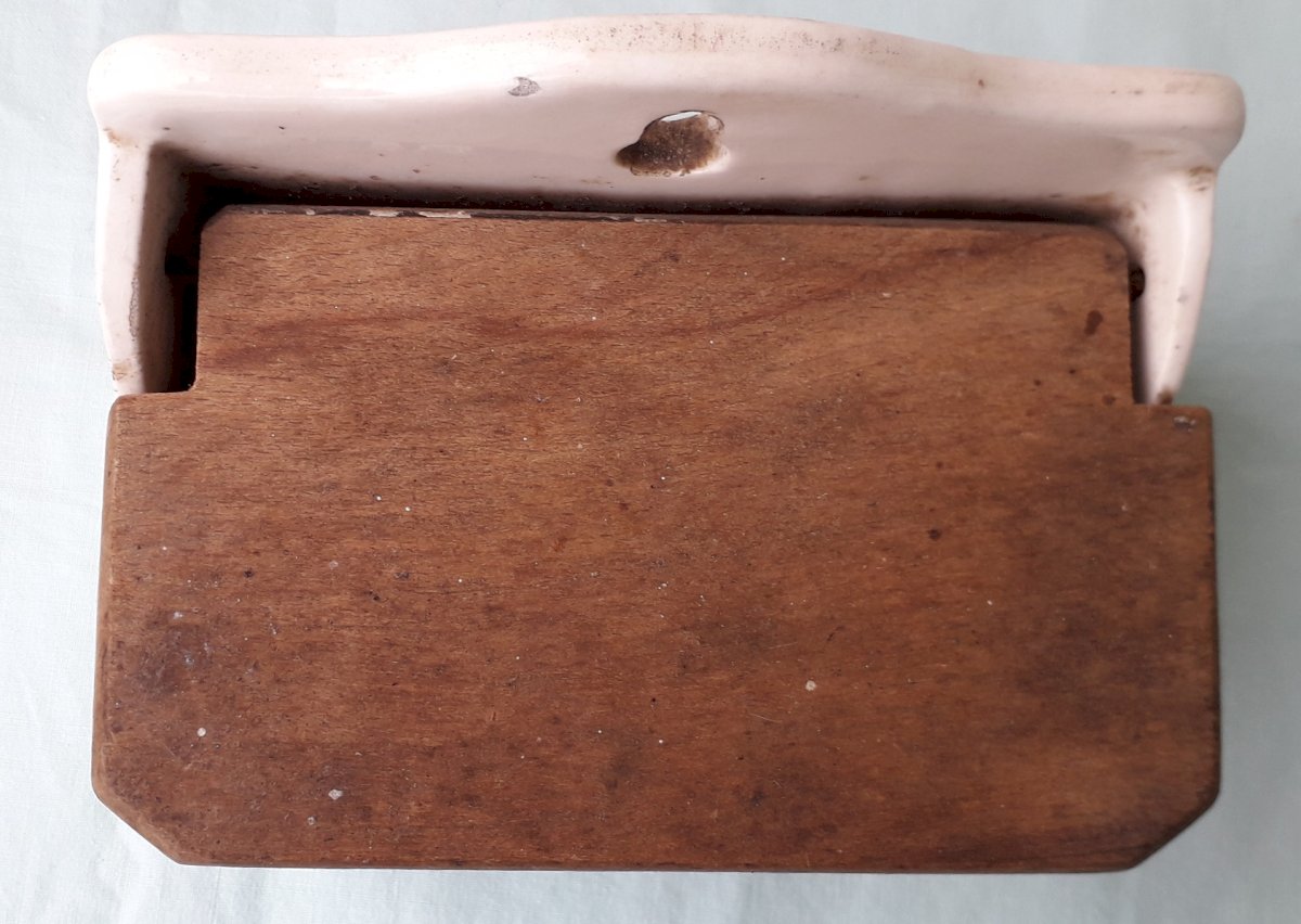 Boite à allumettes en faïence de Tchécoslovaquie, et bois, à suspendre.
