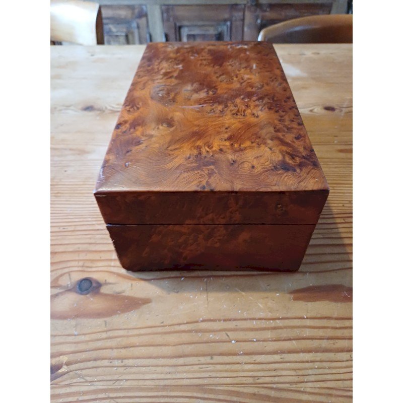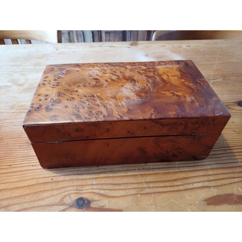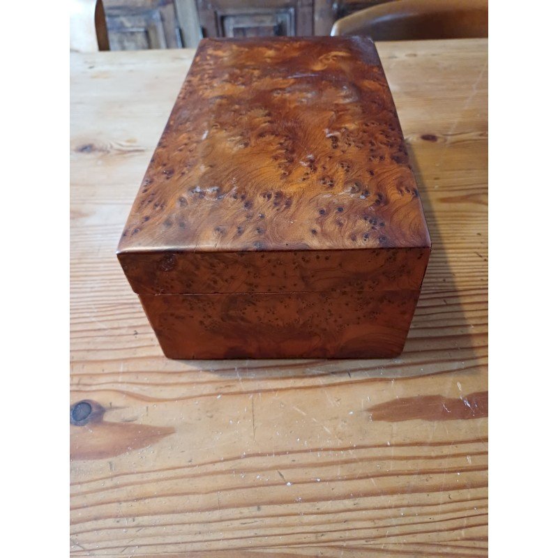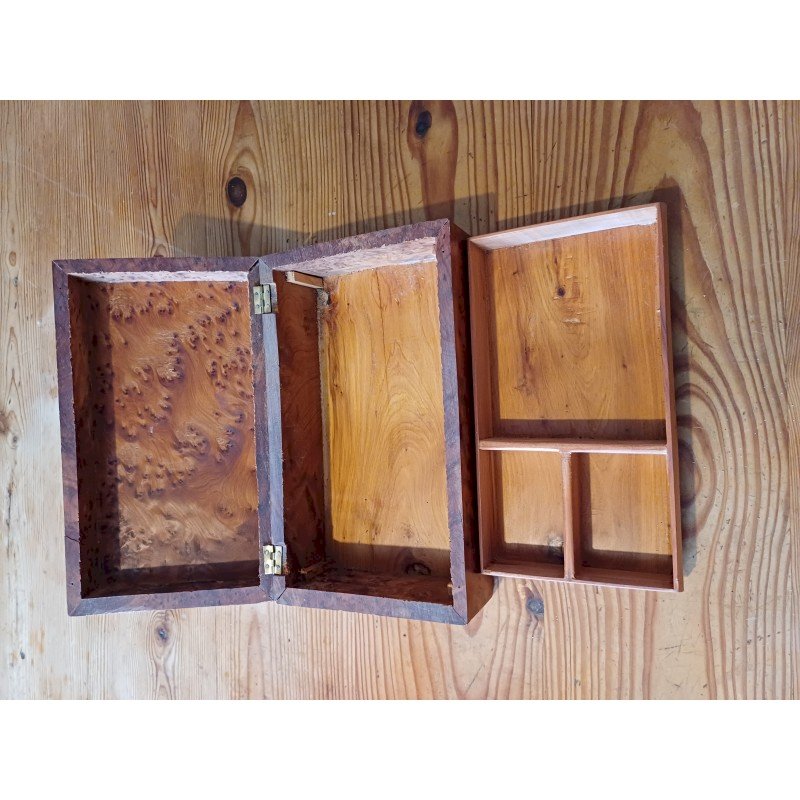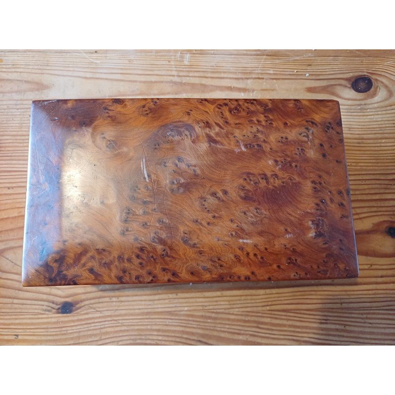 Boite à Bijoux en Loupe de Noyer , Haut : 10 cm , long et larg : 26 cm sur 15 cm , poids : 1,2 Kg , trés bon ètat