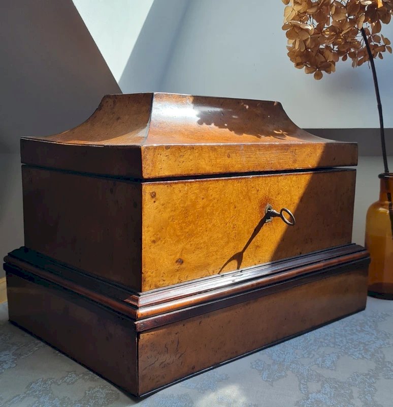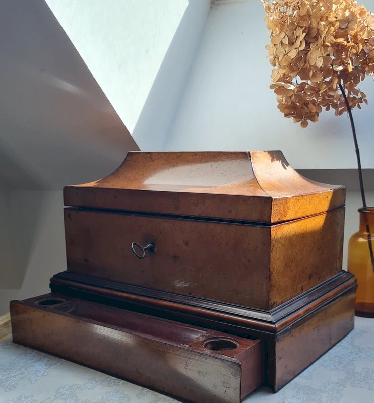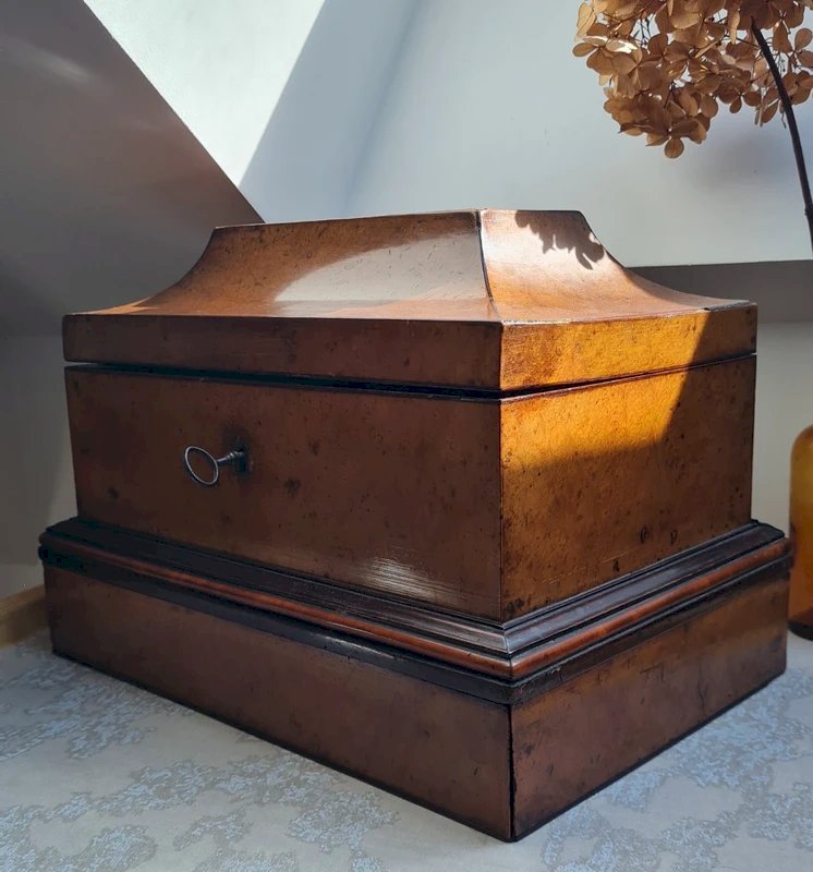 Boite à bijoux ou coffret à tiroir secret avec sa clé époque Napoléon