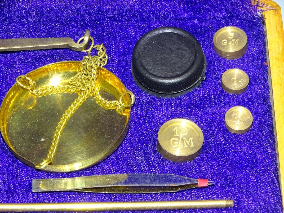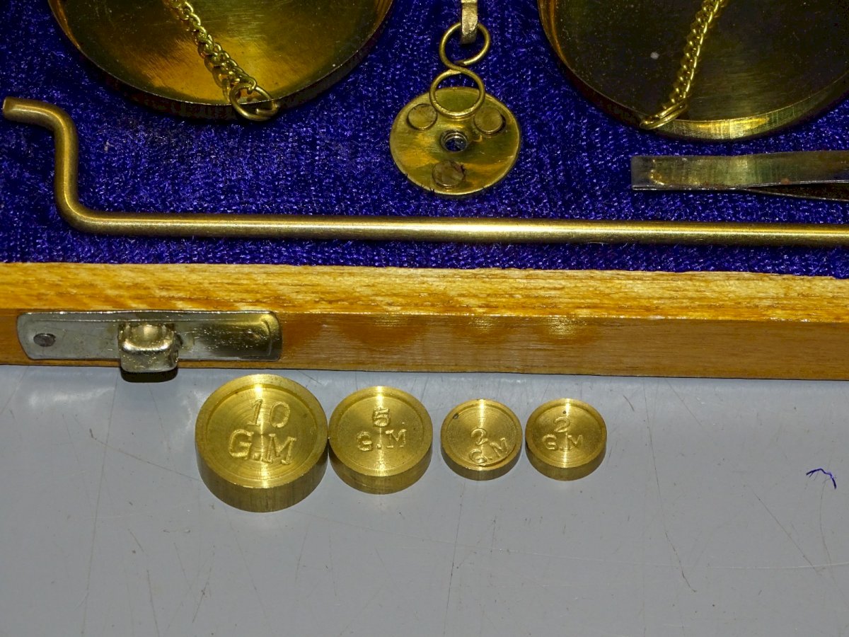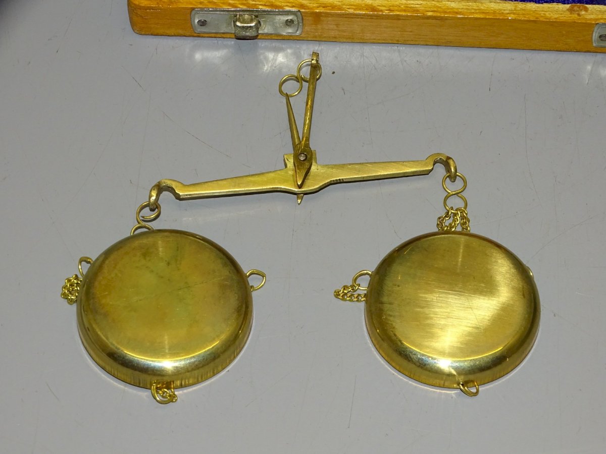 -BOITE BALANCE DE CHANGEUR COMPLETE AVEC DIFFERENTS POIDS MADE IN INDIA XXe D