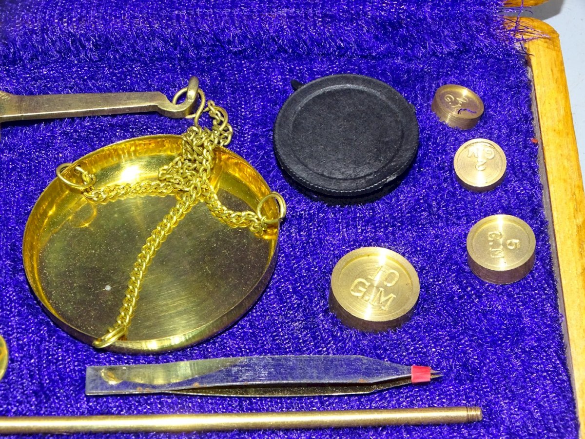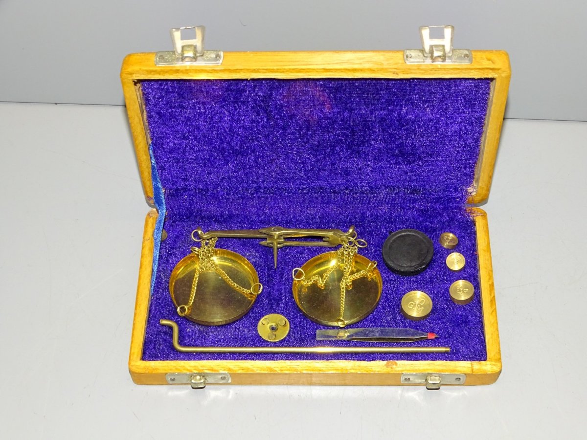 Boite coffret balance de changeur made in India XXe - il manque il me semble juste un petit poids, sinon, elle est complète - dans son jus de trouvailles, sortie de grenier, en bon état d'usage   ( voir photos ) - Réf. 1V240718/337 BIS  -  Boite 18,5 x 10,3 cm Hauteur 2,6 cm - Diamètre plateaux 4,6 cm -  Poids 230 g - Pour me contacter mon adresse mail : EXPEDITION POSSIBLE EN MONDIAL RELAY ou COLISSIMO sur demande TRES BON EMBALLAGE GARANTI  MERCI de BIEN REGARDER TOUTES les PHOTOS car ELLES FONT PARTIE INTEGRANTE de la DESCRIPTION et PERMETTENT de VOIR l'OBJET AU MIEUX  avec SES PETITS DEFAUTS EVENTUELS - État:Occasion: Objet ayant été utilisé. Consulter la description du vendeur pour avoir plus de détails ...Occasion: Objet ayant été utilisé. les éventuelles imperfections. Pays d'origine:Inde