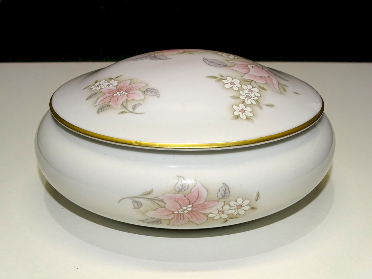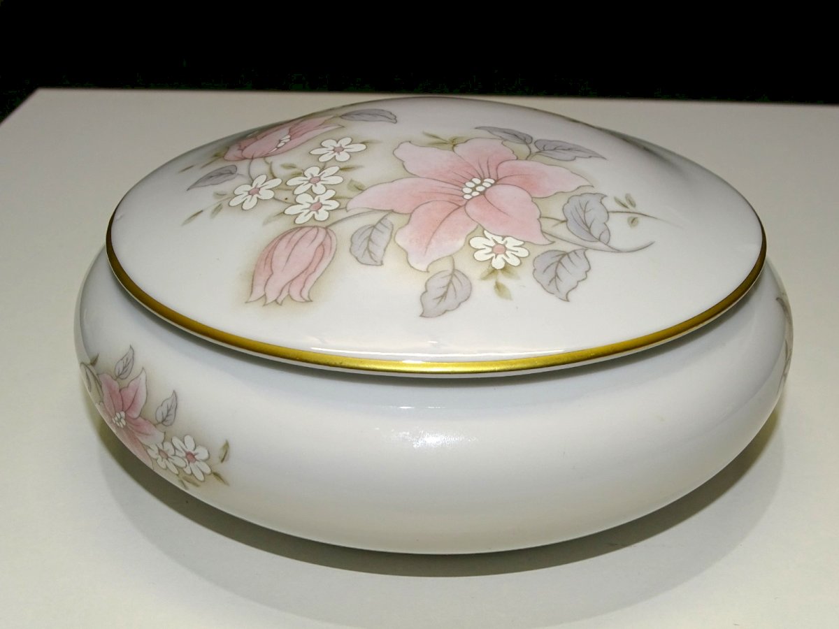 jolie boite bonbonnière boite à bijoux porcelaine de Limoges par Ternet - avec un joli décor fleuri sur le couvercle - rehaussé main - jus de grenier, en bon état d'usage (voir photos) - Réf. 1V240718/478 - Diamètre max 16 cm - Diamètre bord 12,2 cm - Hauteur 7,2 cm - Poids 570 g - Pour me contacter mon adresse mail : EXPEDITION POSSIBLE EN MONDIAL RELAY ou COLISSIMO sur demande TRES BON EMBALLAGE GARANTI MERCI de BIEN REGARDER TOUTES les PHOTOS car ELLES FONT PARTIE INTEGRANTE de la DESCRIPTION et PERMETTENT de VOIR l'OBJET AU MIEUX avec SES PETITS DEFAUTS EVENTUELS -
