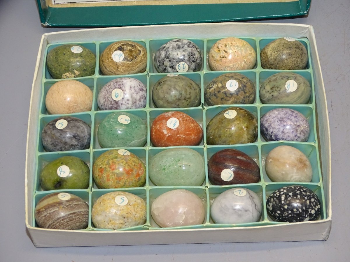 -BOITE COLLECTION 25 OEUFS MINIATURES DIFFERENTES PIERRES OBJETS de VITRINE D