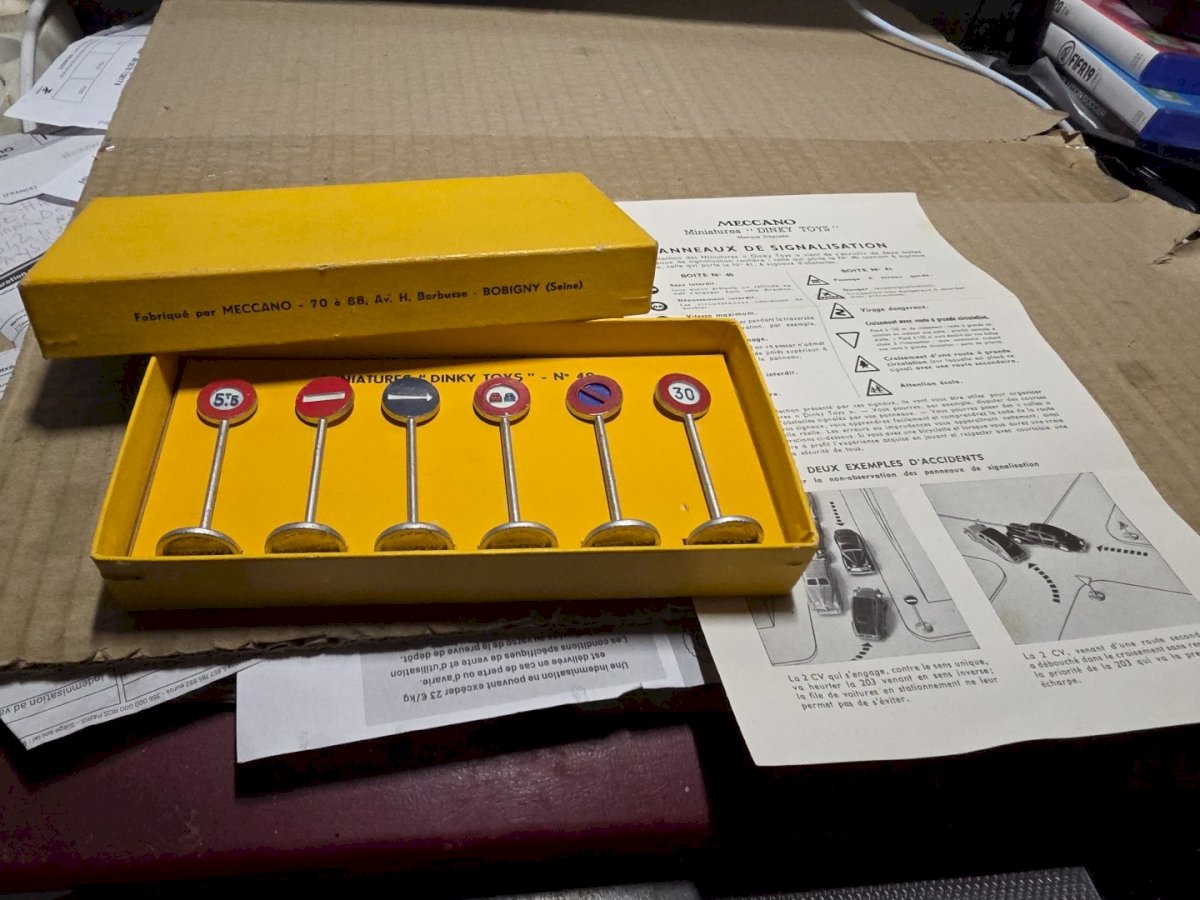 Boite de 6 panneaux de signalisation Ville - Dinky Toys France 40, 1952/59 - TBE