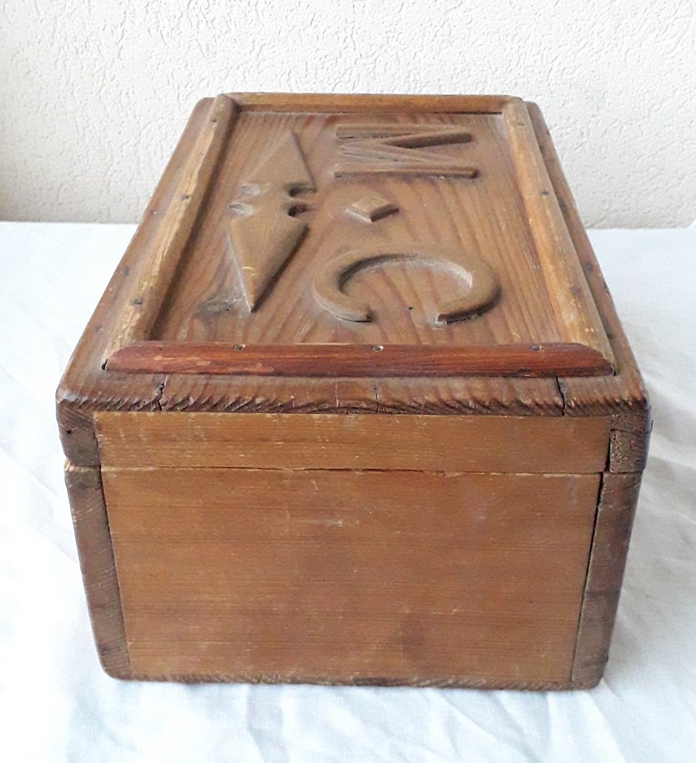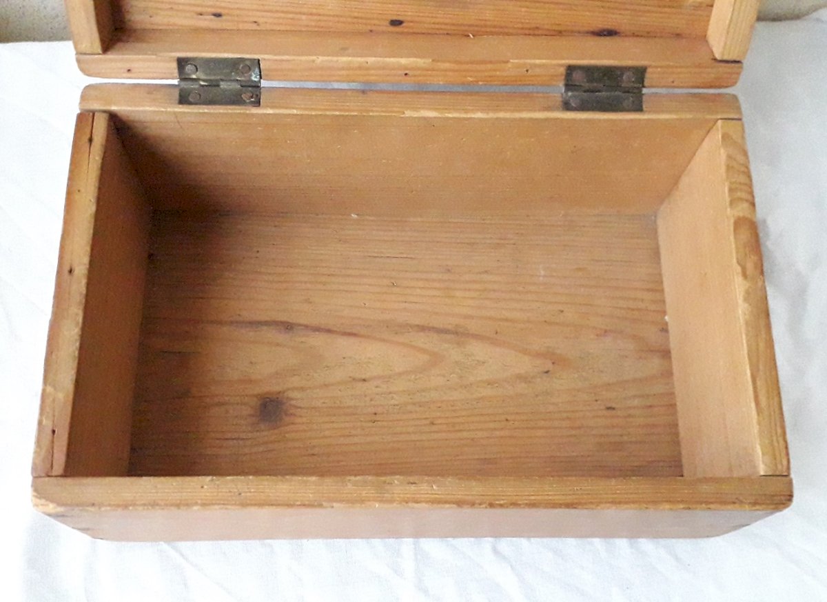 Ancienne boite en bois, monogrammée "M. C".