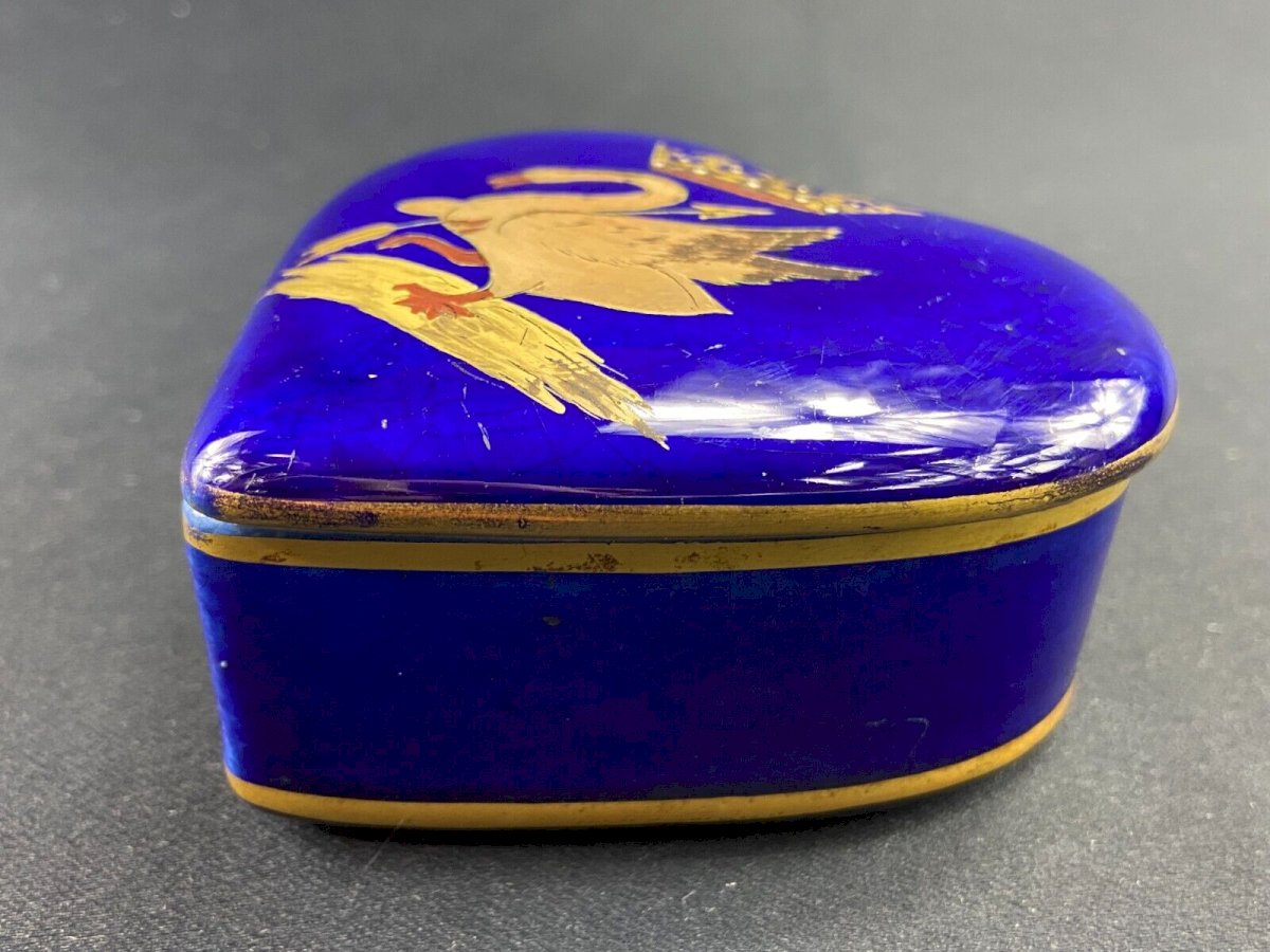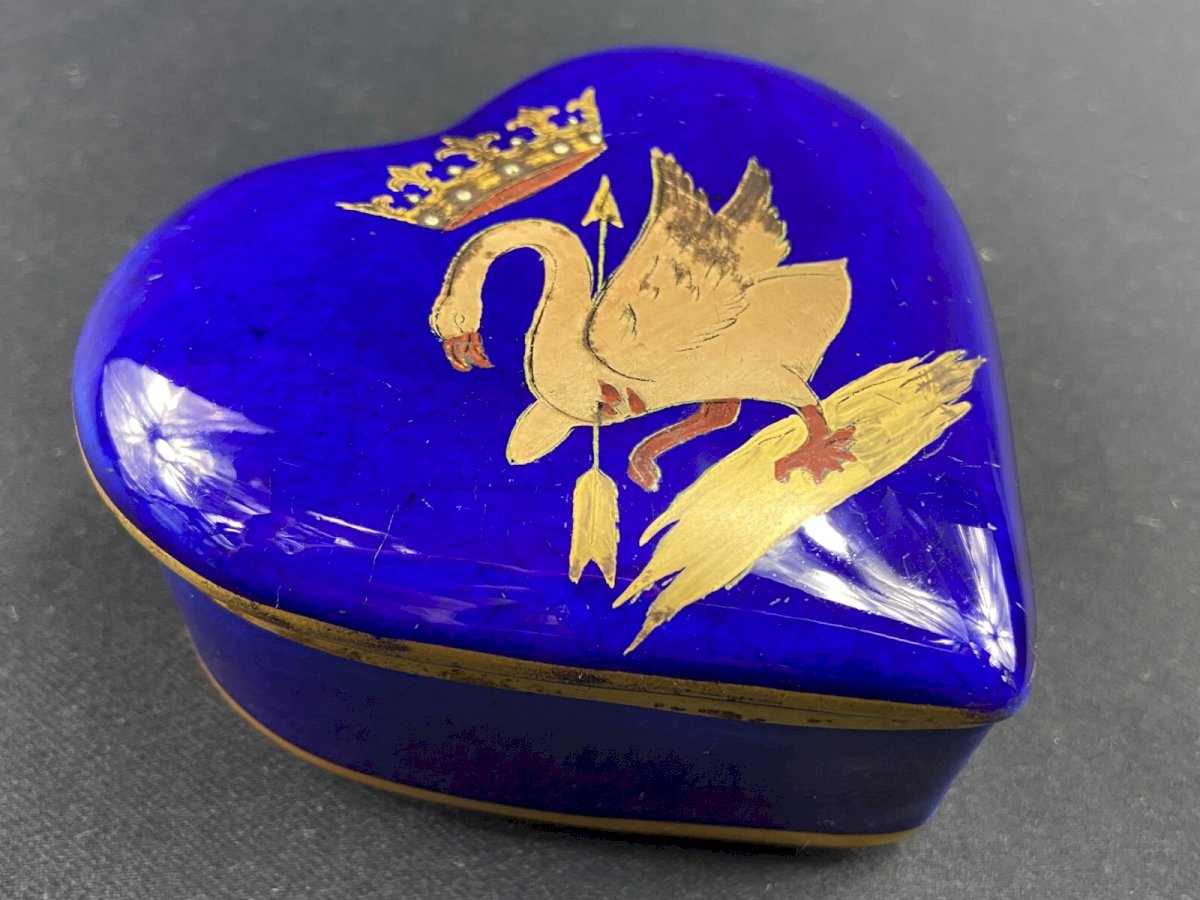 Boite en porcelaine à décor de cygne à la couronne or sur fond bleu nuit Blois