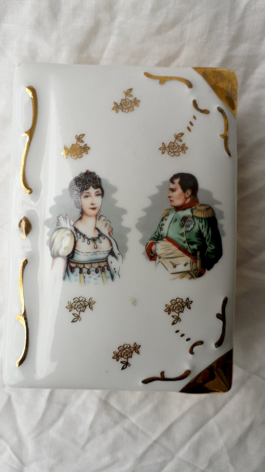 Boite en porcelaine, en forme de livre, à l'effigie de Napoléon et Joséphine.