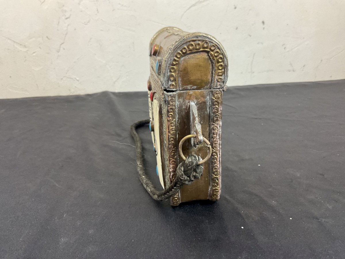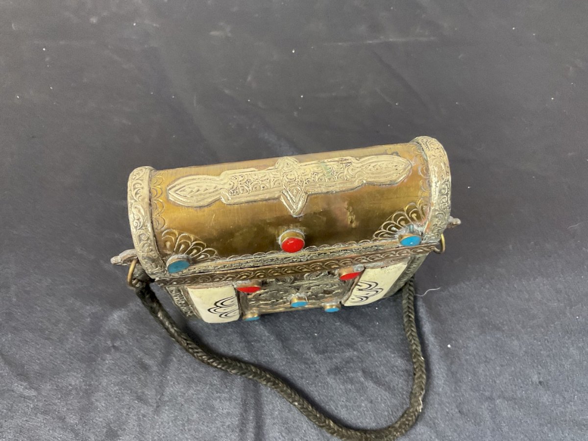 Boite PORTE-CORAN BERBÈRES avec turquoise, corail Authenticité:Original Type:boite Origine:Afrique Matière:metale